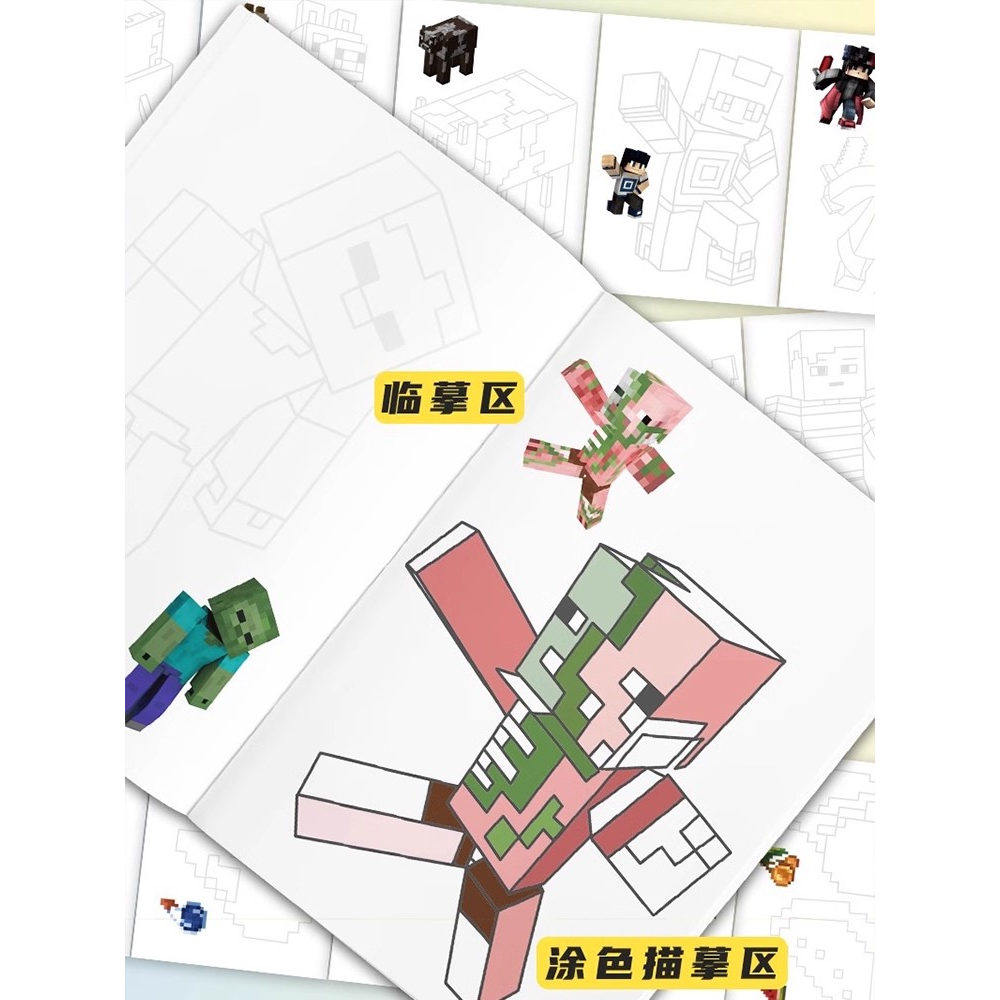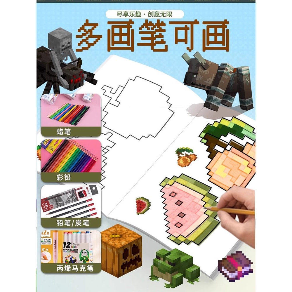 我的世界像素描摹画画本MC描儿童绘画立体画线稿手绘控笔练习涂鸦画本画册像素画马赛克涂色绘画益智儿童手绘