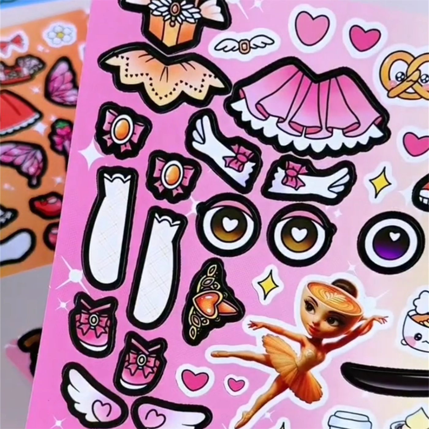 萌崽新款学霸学渣果冻贴纸安静书儿童免裁剪手工粘贴DIY女孩趣味玩具
