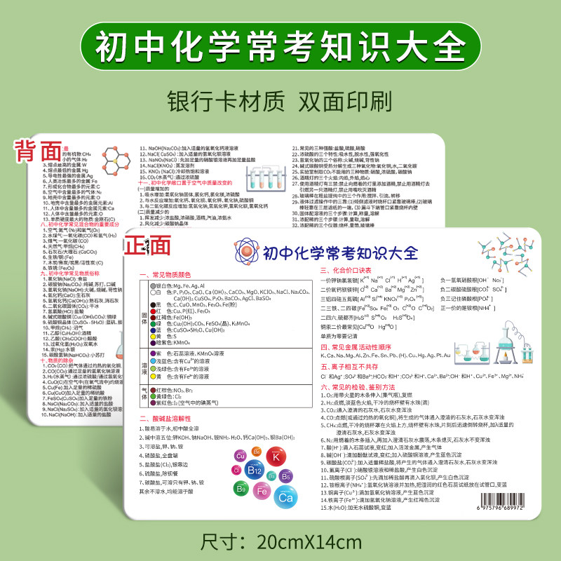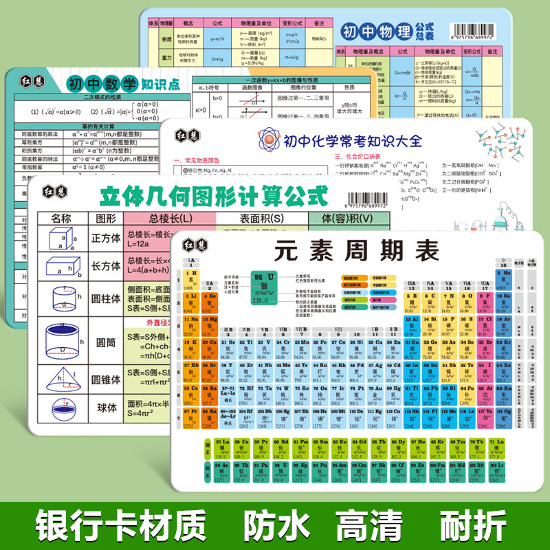 初中化学元素周期表卡片知识点挂图数学物理公式方程式英语大全