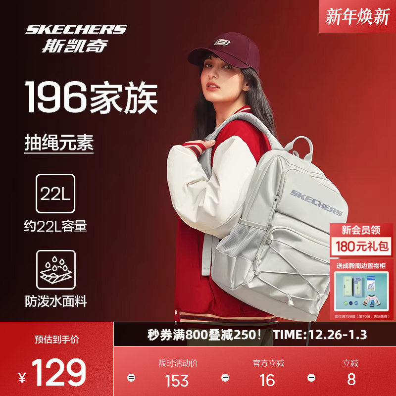 斯凯奇书包大容量电脑包运动旅行大学生双肩包女生初中高中生背包