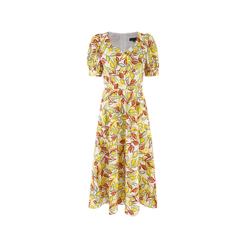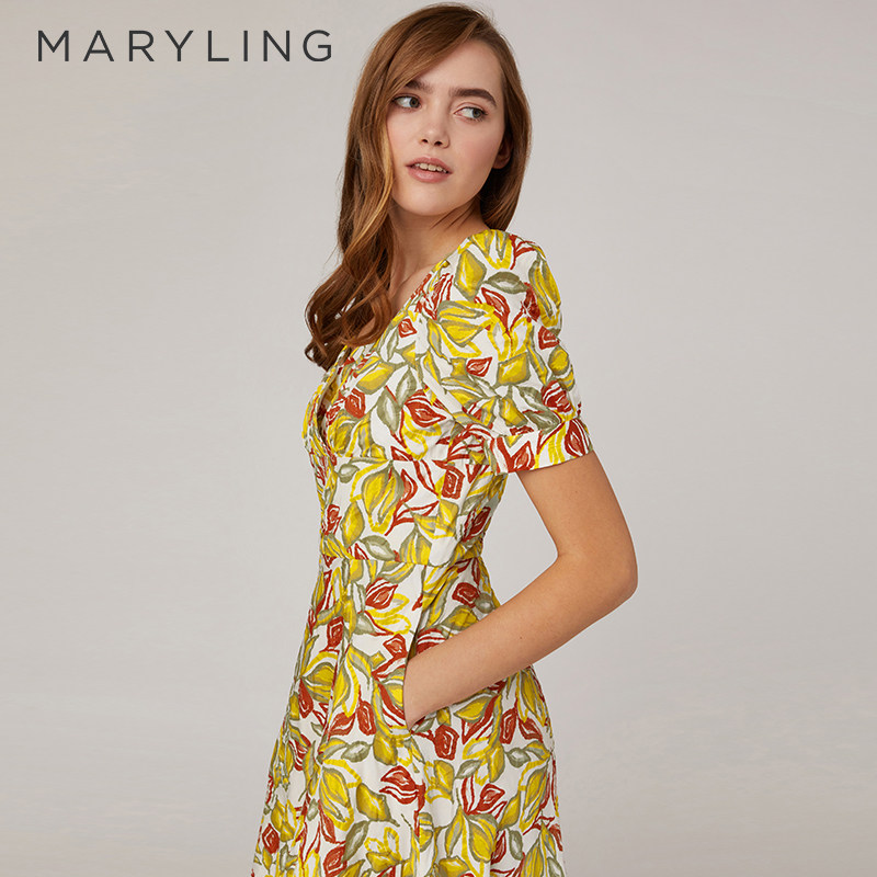【日落森林】MARYLING玛俪琳夏季新品枫叶黄色V领碎花连衣裙