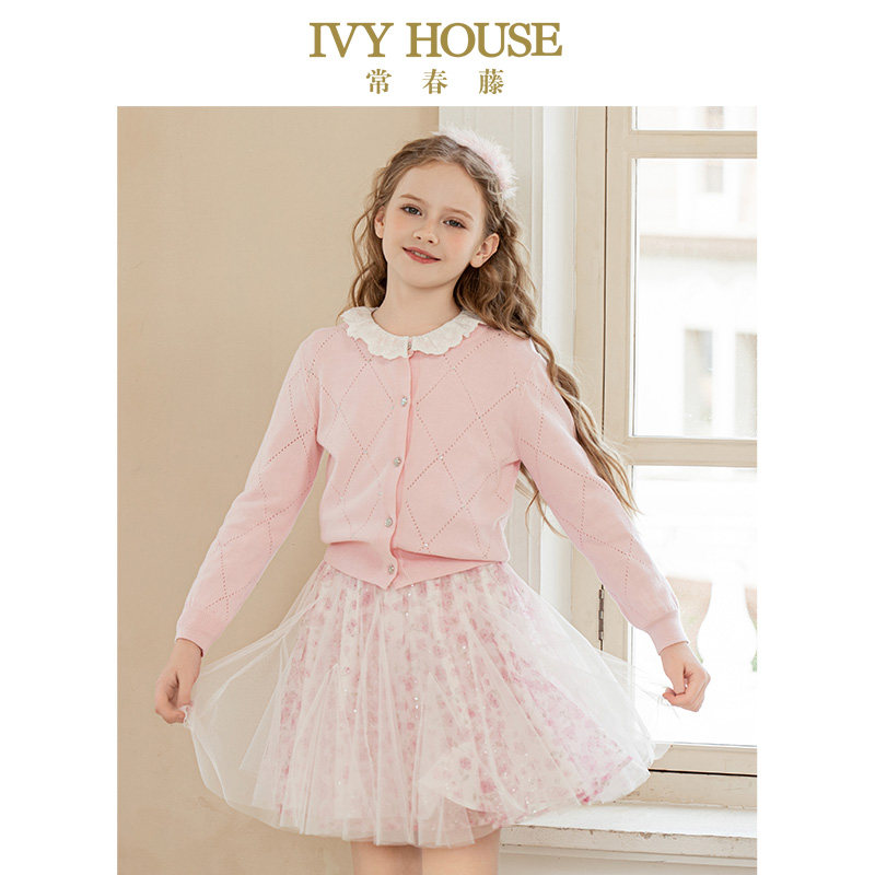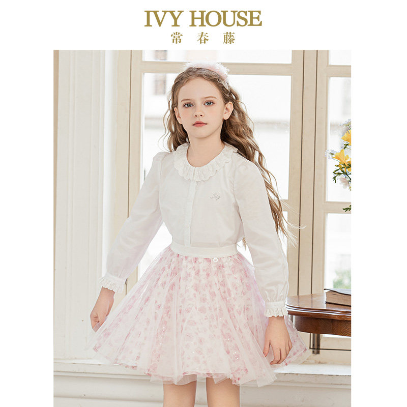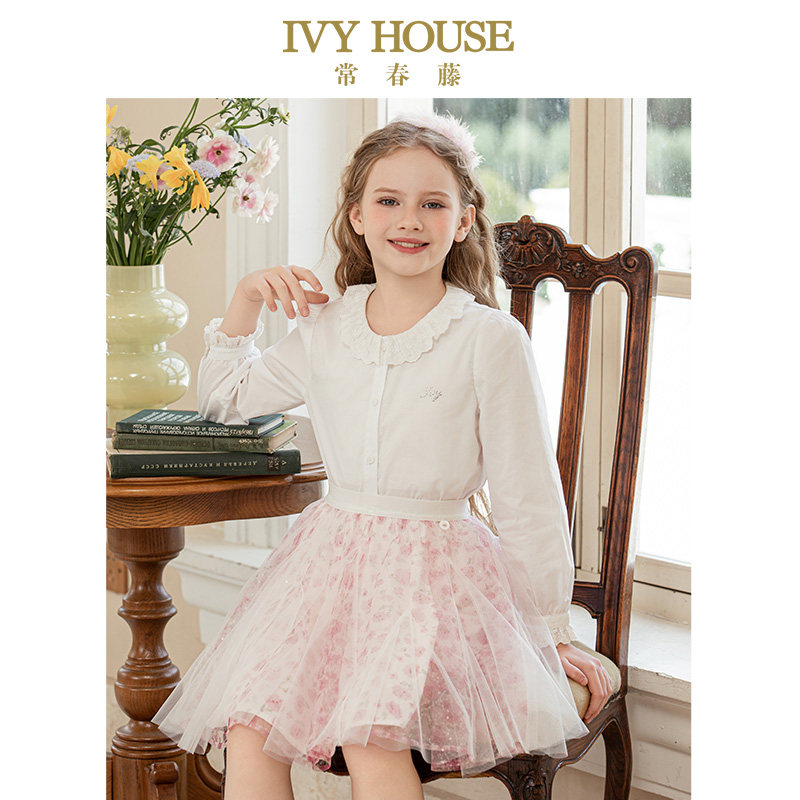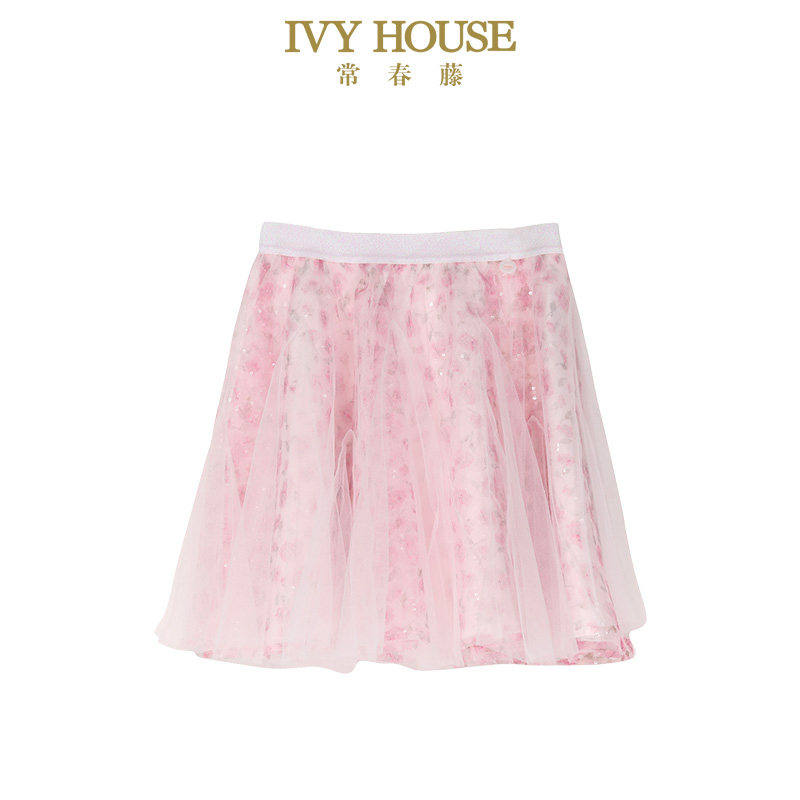 IVY HOUSE常春藤儿童装女童秋季款 印花网纱短裙仙女半身裙亲子装