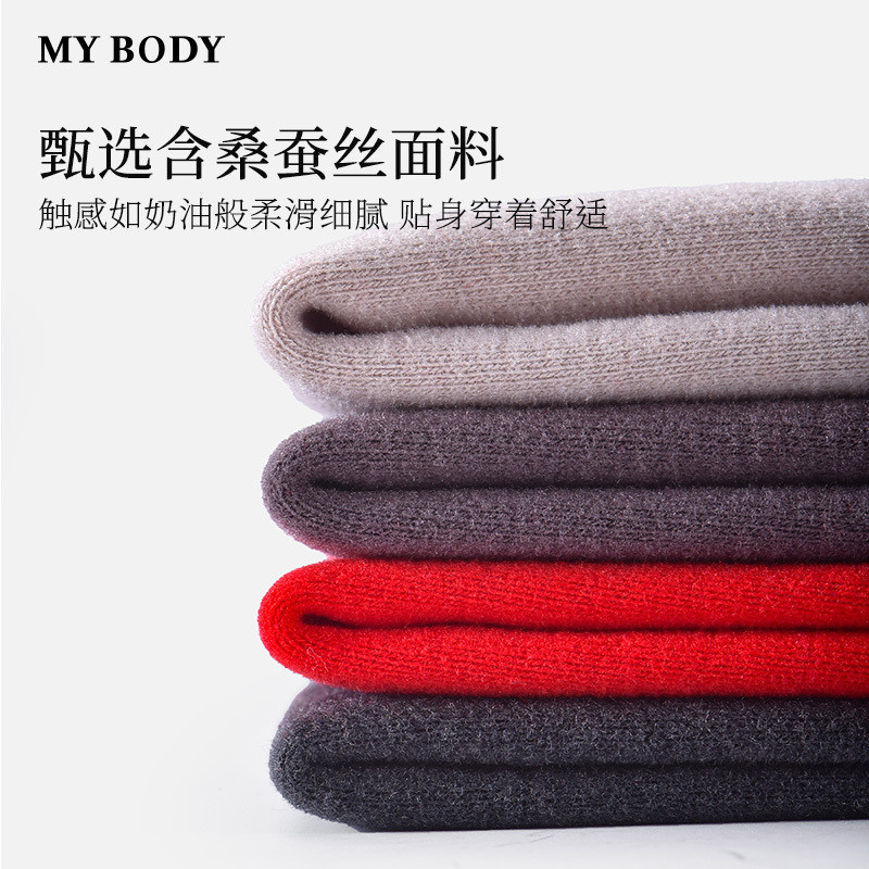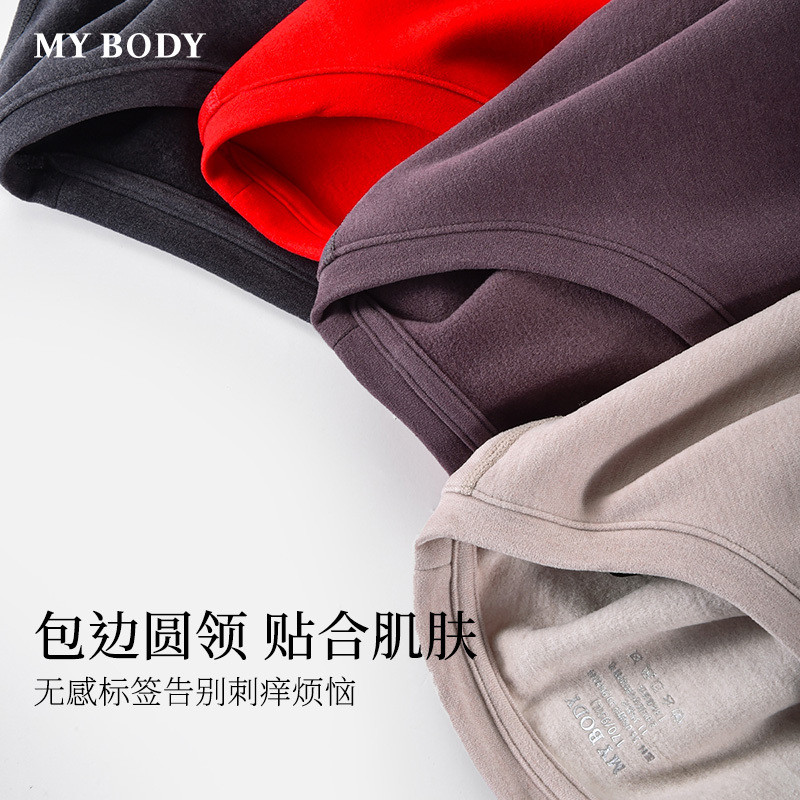 商场同款MYBODY冬季新款保暖内衣男款桑蚕丝基础圆领长袖保暖套裝