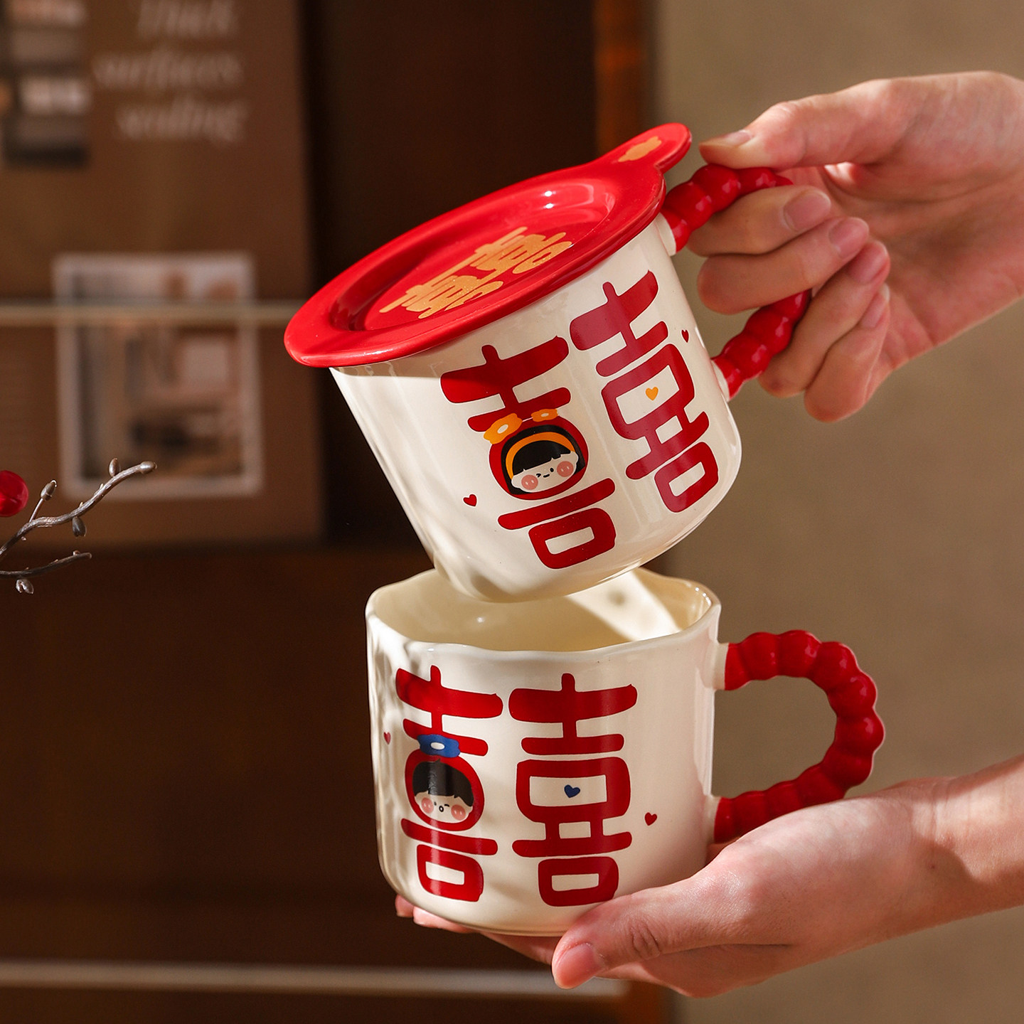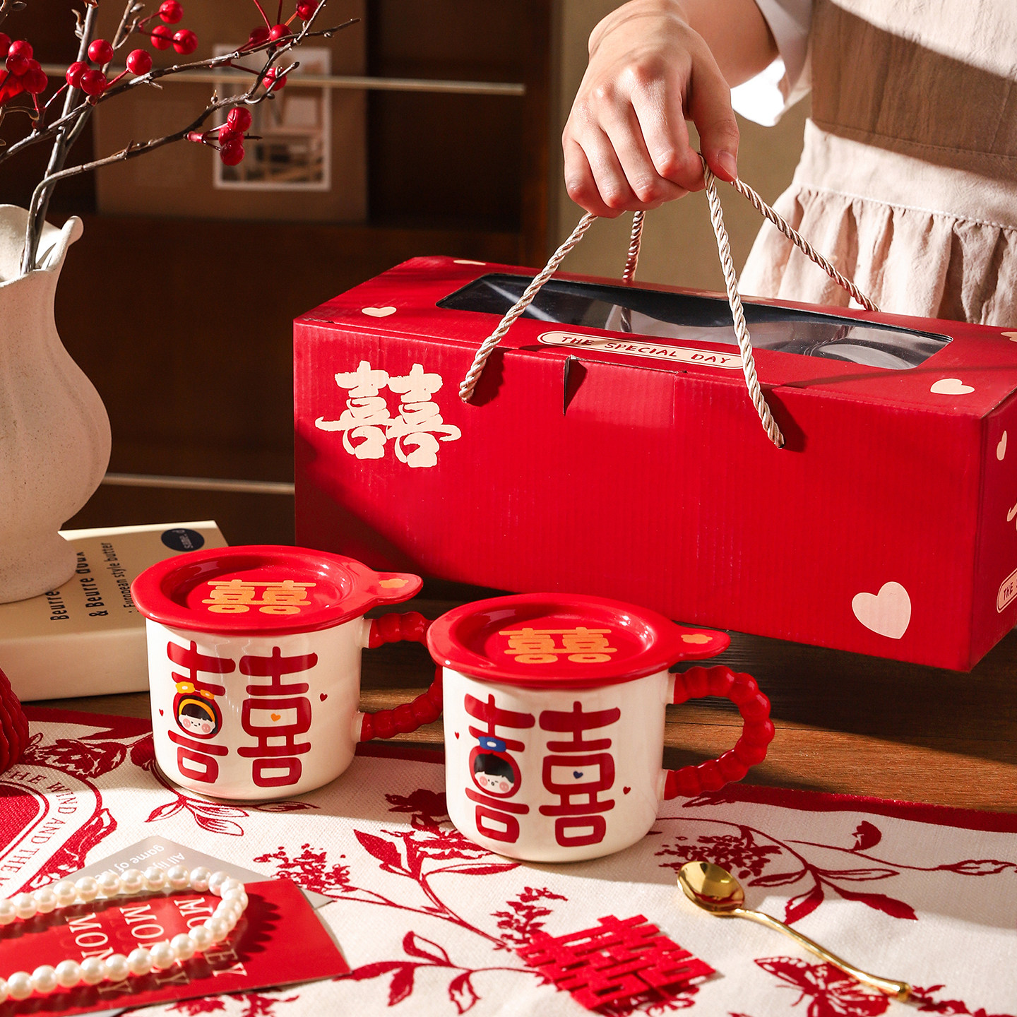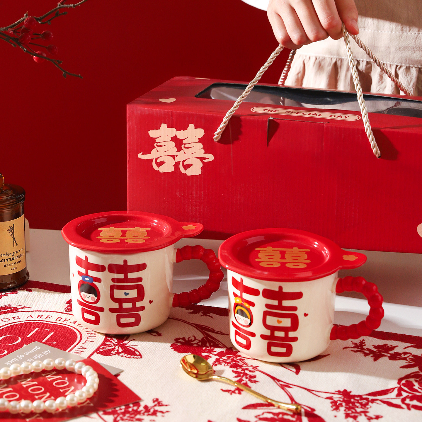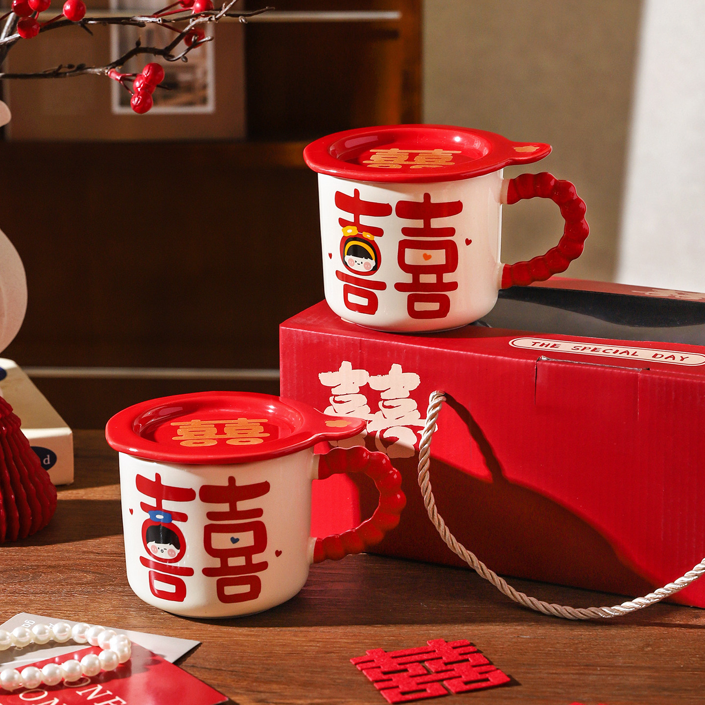 舍里喜字陶瓷对杯情侣水杯创意马克杯礼盒新婚礼物结婚礼物伴手礼