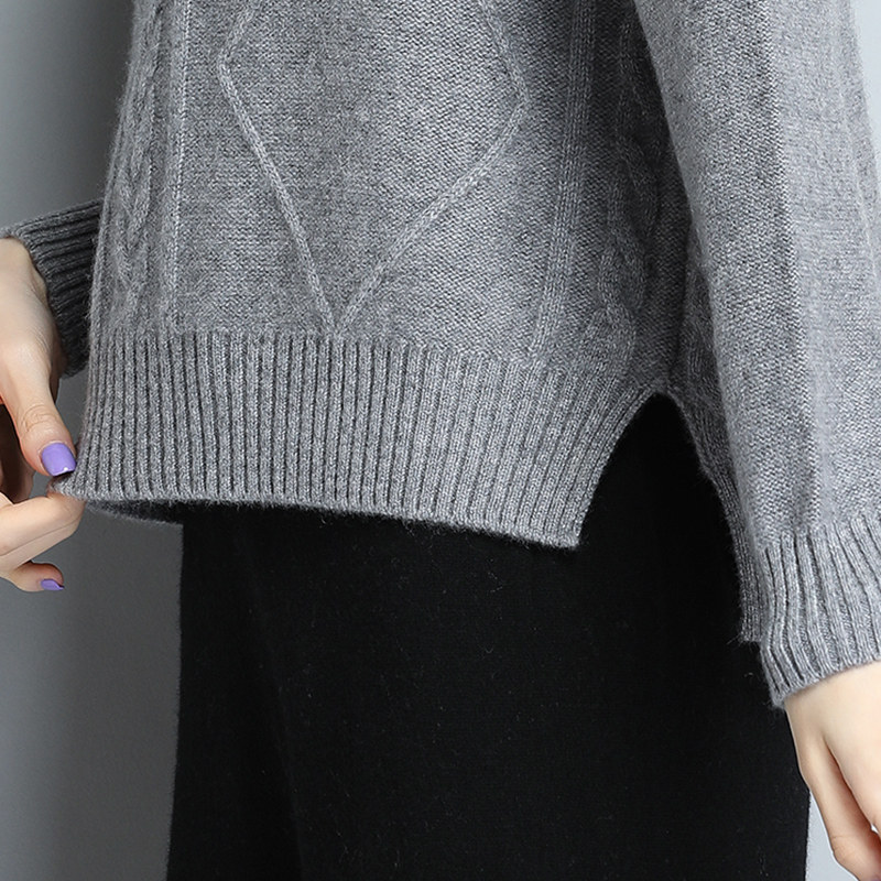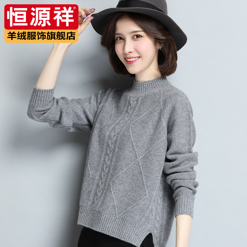 恒源祥纯羊绒衫女宽松慵懒2025秋冬季高圆领提花加厚针织套头毛衣