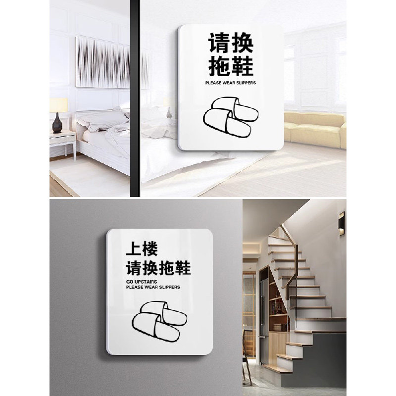 请换拖鞋已消毒标识牌美容院淋浴间男女浴室洗浴中心入内请脱鞋温馨提示牌告示牌子定制瑜伽室汗蒸房标牌定做