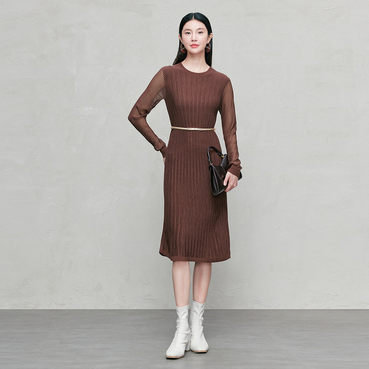 【商场同款】FINITY菲妮迪连衣裙26春新款简约圆领系带收腰裙子女