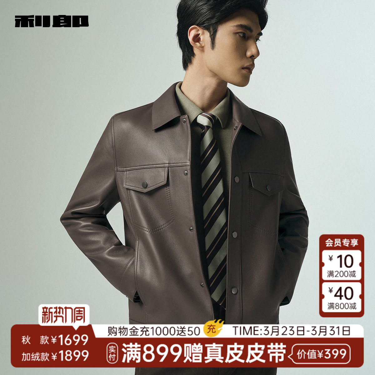 【绵羊皮】利郎官方真皮皮衣男士秋冬款商务翻领皮夹克外套男装