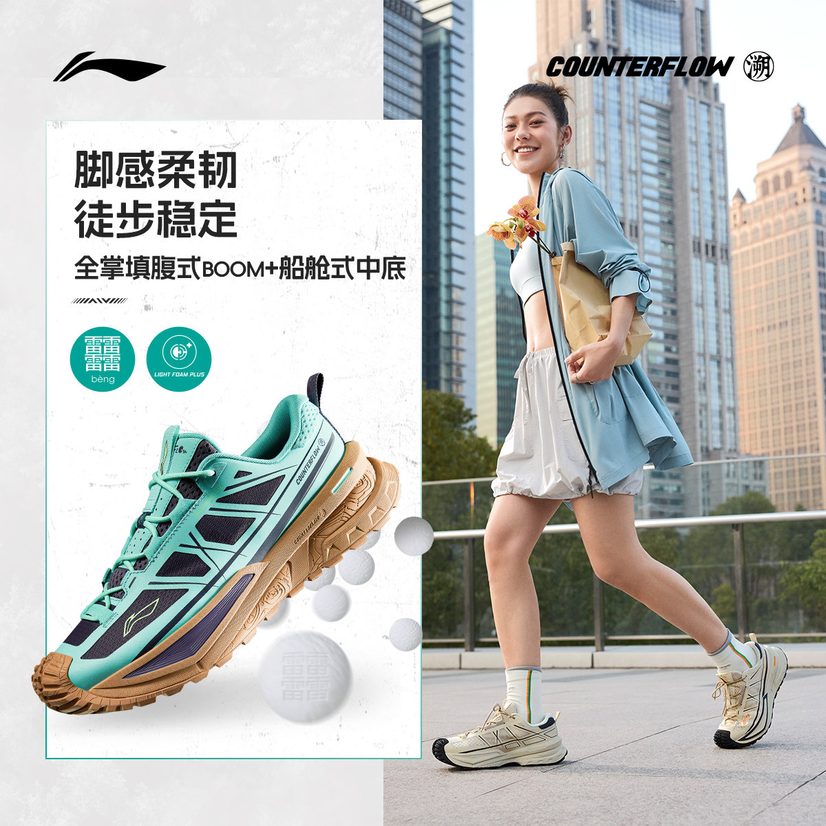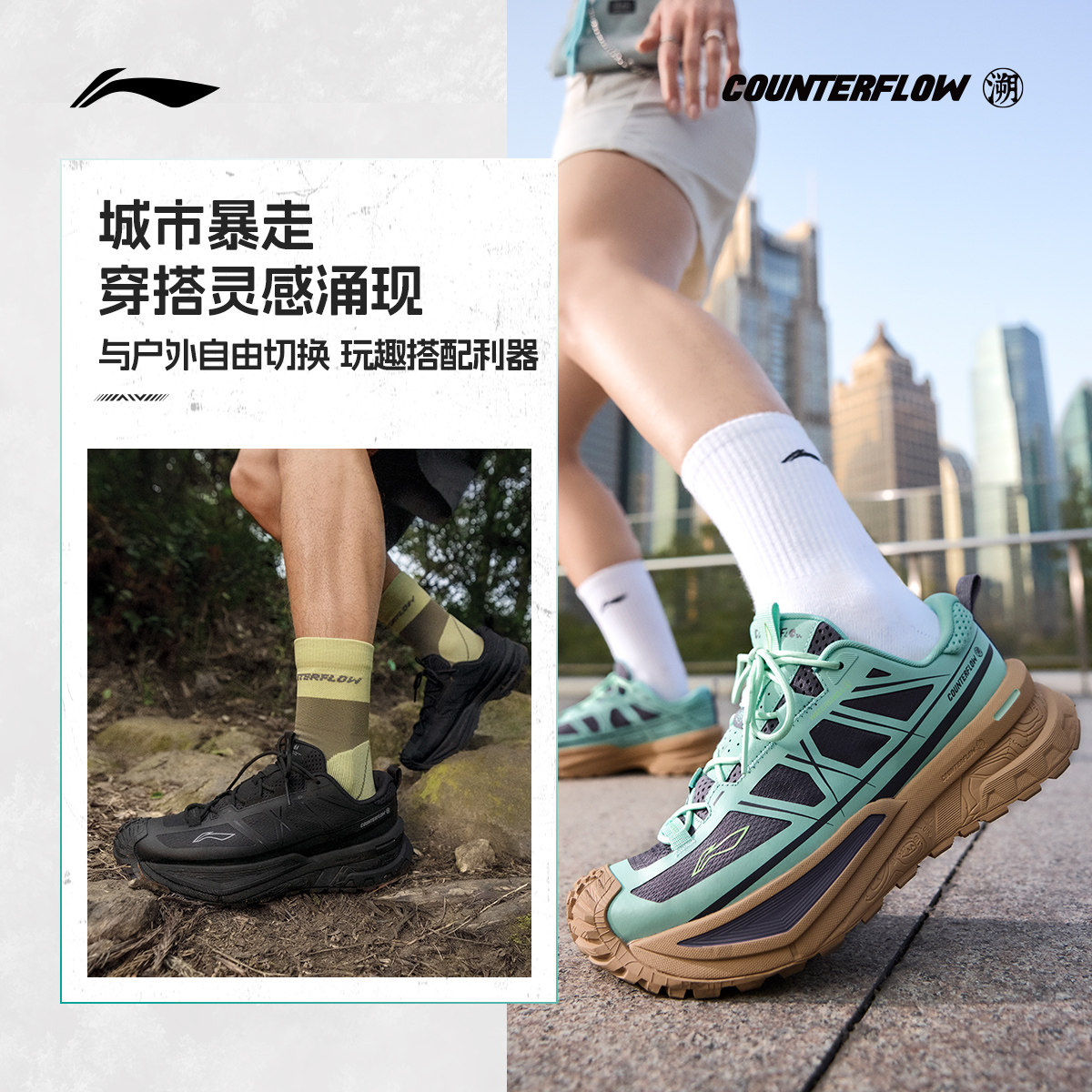 李宁户外CF溯行川徒步鞋丨男女软弹稳定支撑防泼水防滑登山运动鞋