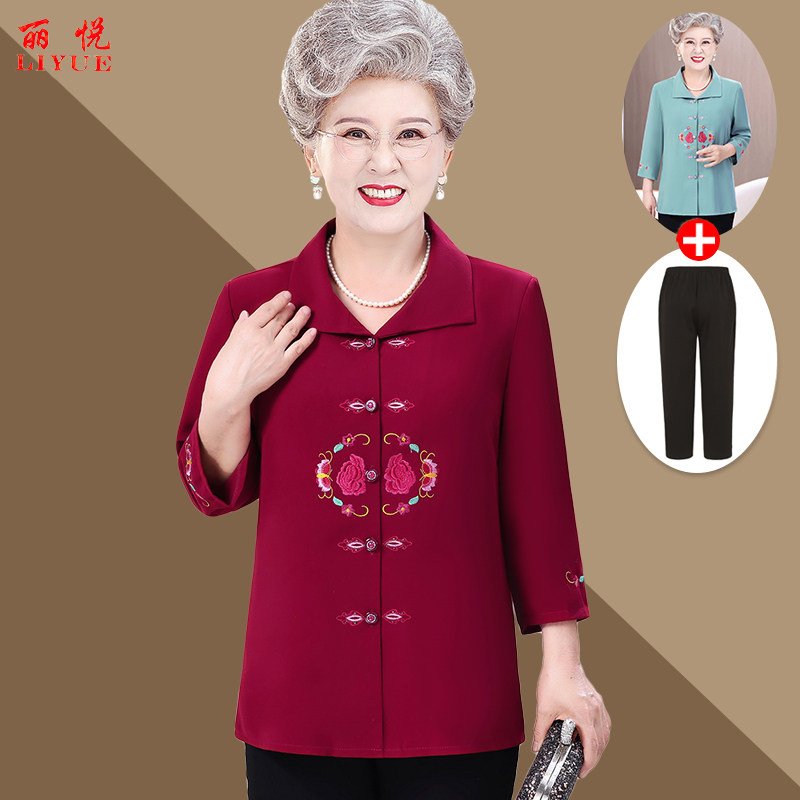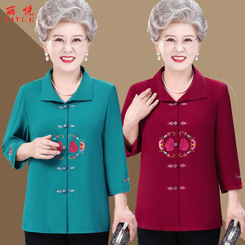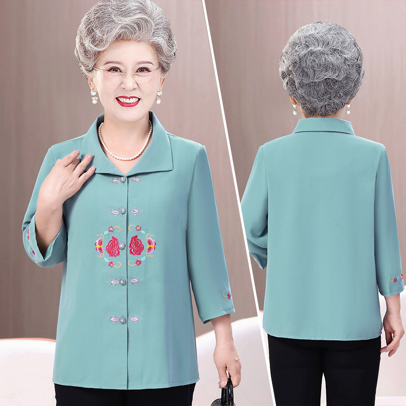 中老年人衬衫女奶奶夏装套装衣服妈妈老人衬衣老太太上衣婆婆夏服