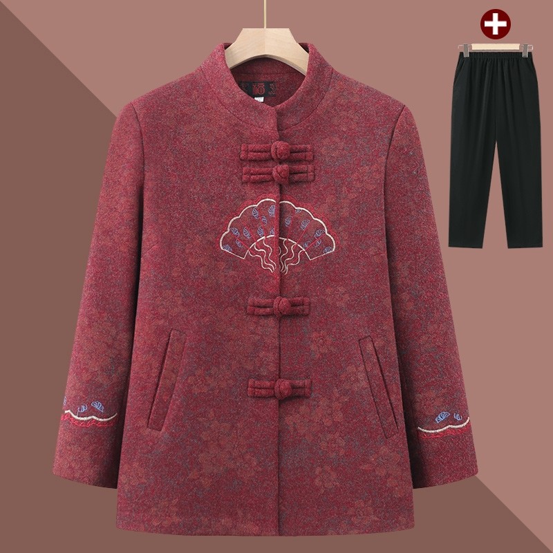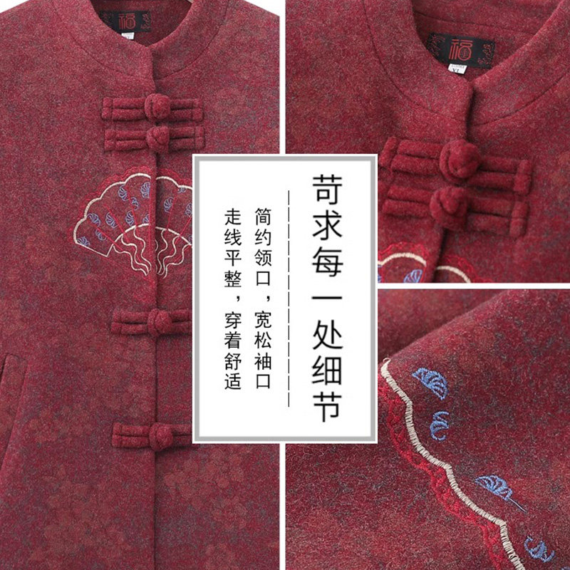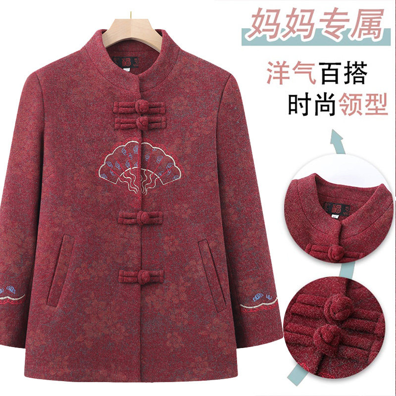 奶奶秋冬款外套中老年人唐装喜庆女装妈妈春秋款老太太毛呢上衣冬