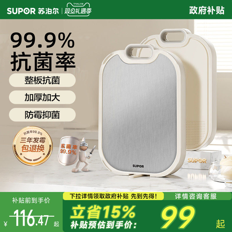 苏泊尔不锈钢菜板切菜板菜板防霉抗菌家用食品级案板双面水果砧板