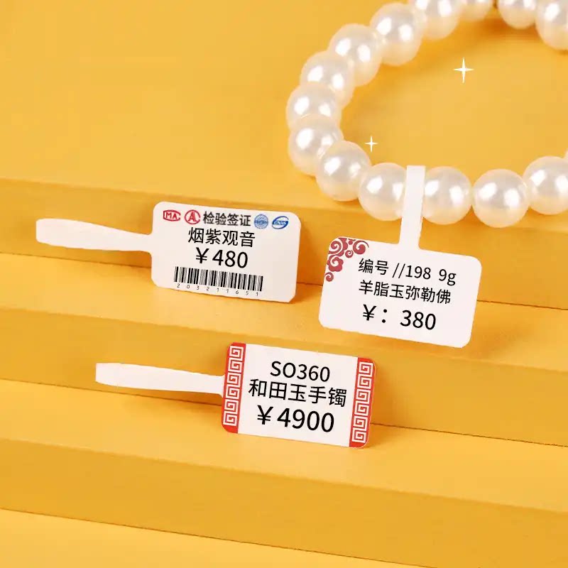 空白热敏珠宝标签纸首饰价签眼镜吊牌贴珍珠项链手串饰品价格盼盼条码合成纸防水防油防刮不干胶手写打印定制