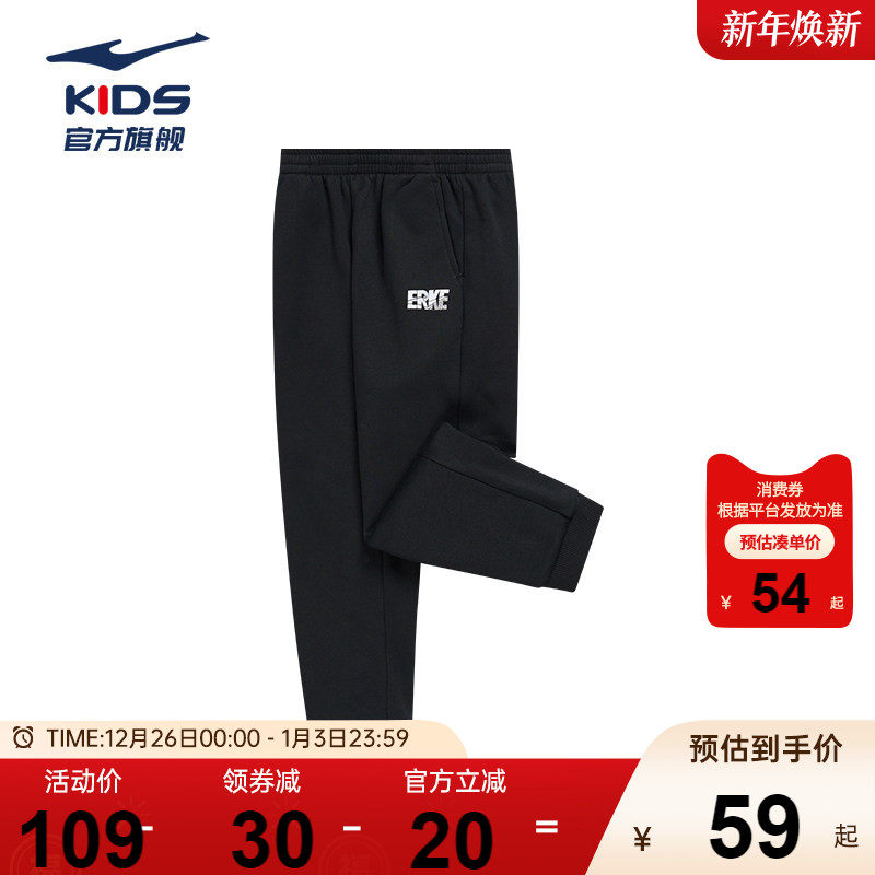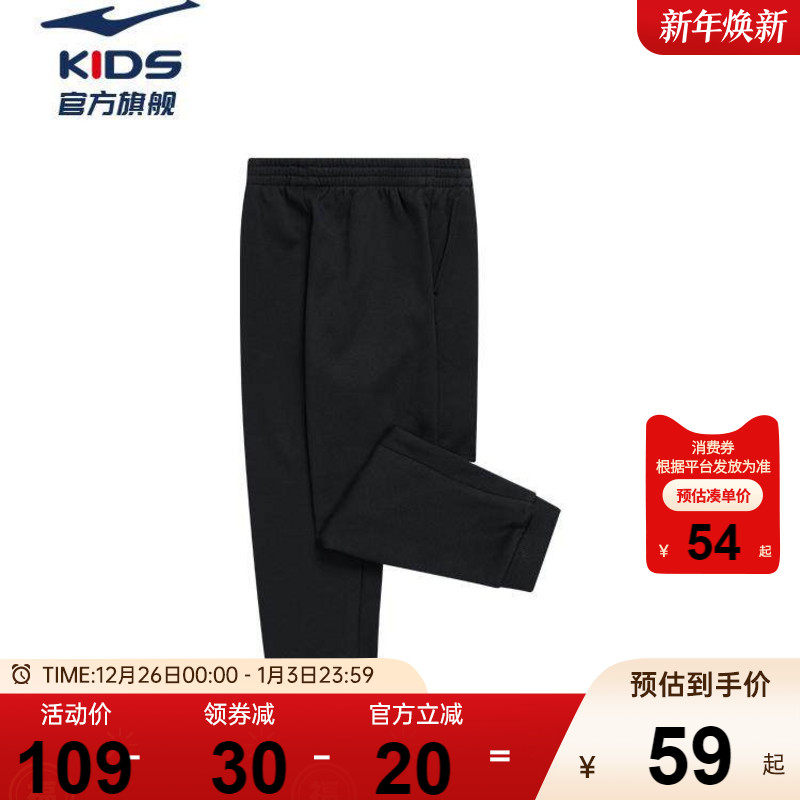 鸿星尔克童装长裤男童卫裤冬季摇粒绒运动卫裤加绒加厚保暖裤子
