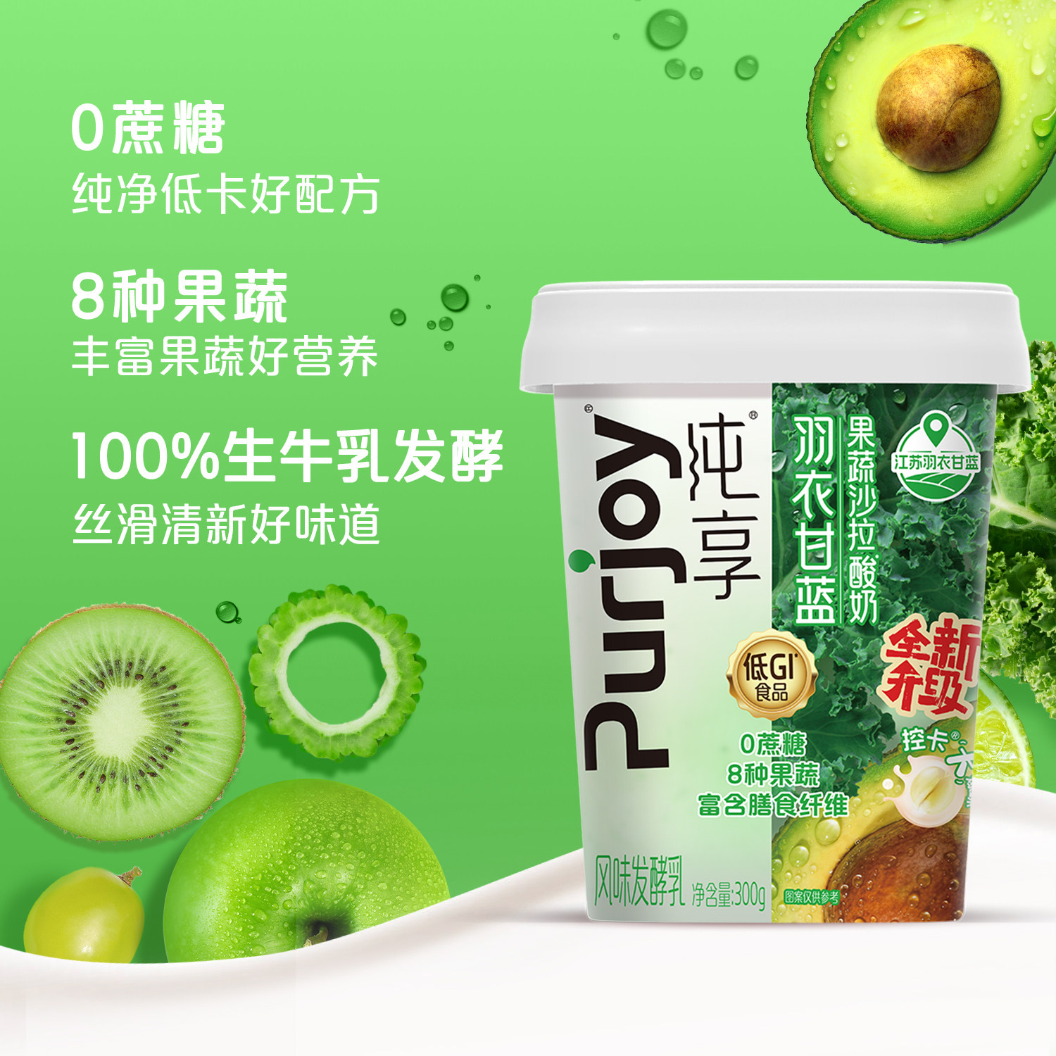 【送酸奶碗】纯享果蔬沙拉风味酸奶羽衣甘蓝芭乐红甜菜300g*8杯