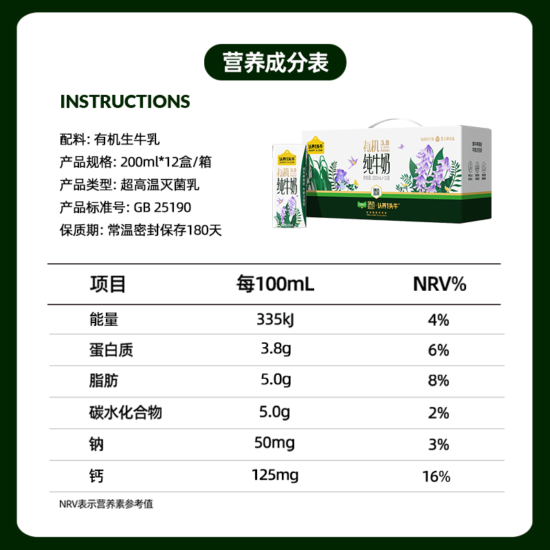【臻选】认养一头牛有机纯牛奶3.8g蛋白200ml*12盒牛奶整箱送礼
