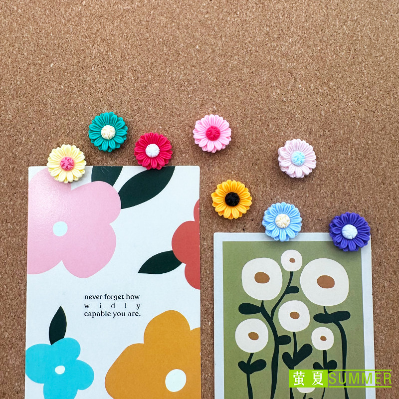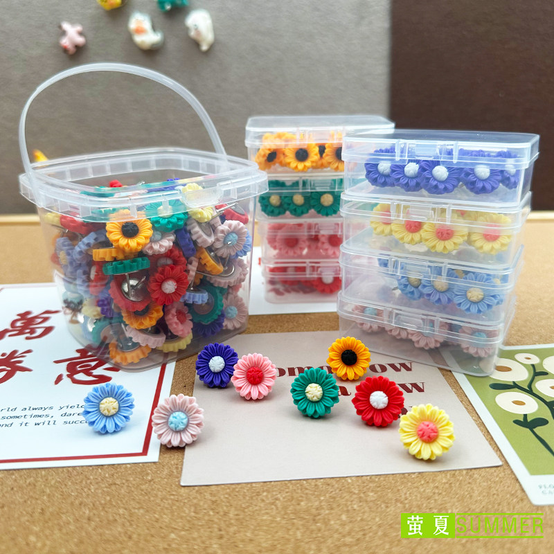 10个创意图钉向日葵小雏菊多色软木毛毡照片墙留言工字小花按钉