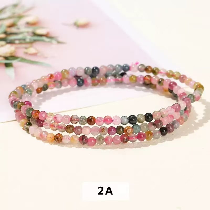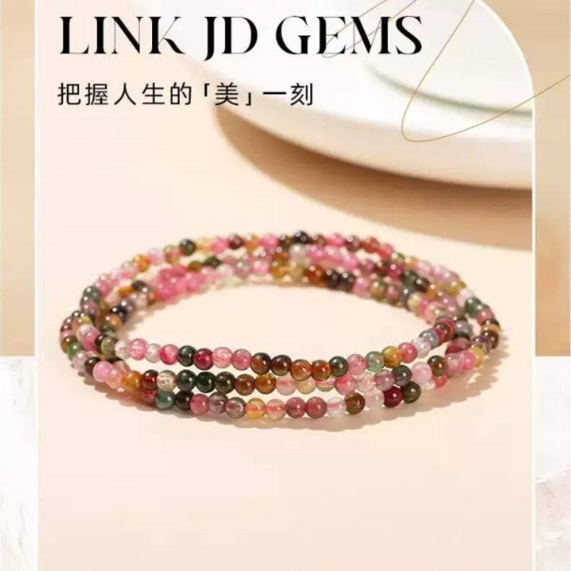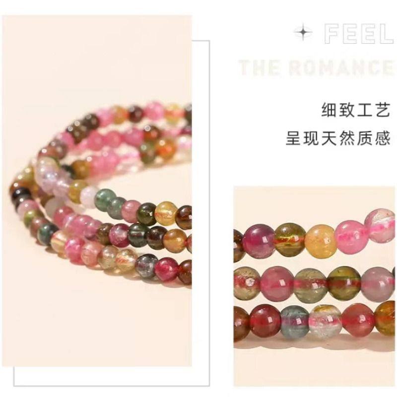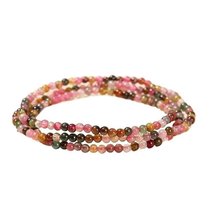天然碧玺多圈手链老矿碧玺女时尚彩虹碧玺三圈手串水晶饰品
