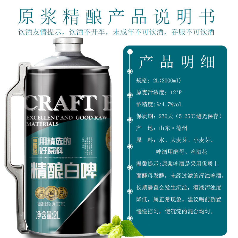 啤酒原浆精酿啤酒2升4斤桶装全麦28天浑浊型扎啤黄啤批发大桶大麦
