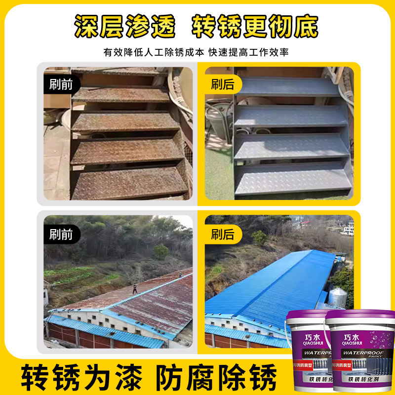 铁锈转化剂防锈漆金属防腐灰色水性油漆底漆彩钢瓦翻新免除锈打磨