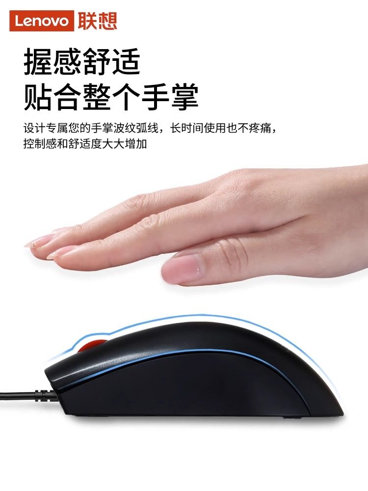 联想有线静音鼠标USB家用无声办公台式笔记本电脑商务电竞游戏