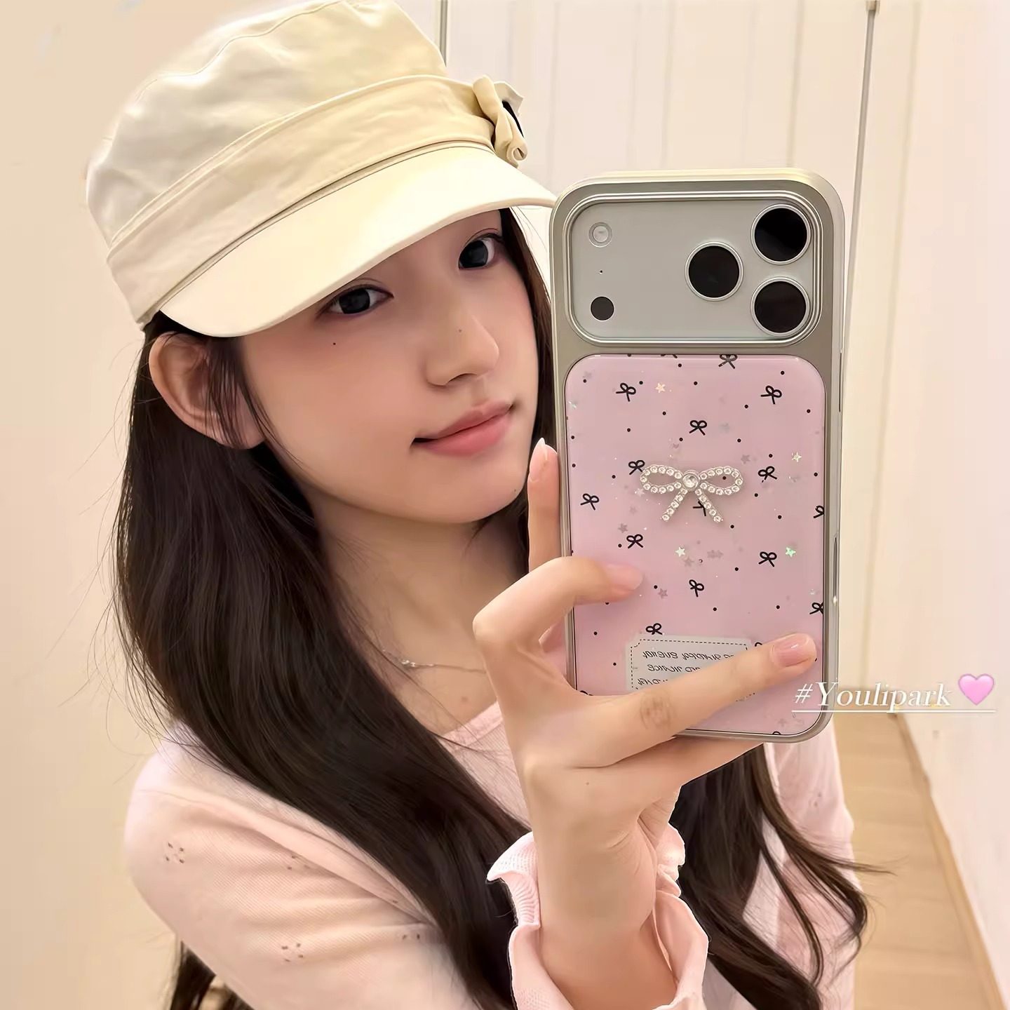 由里公园ins韩系少女唯美柔雾粉闪钻蝴蝶结17适用17pro苹果17ProMax手机壳iPhone16全包14新款16Promax保护套