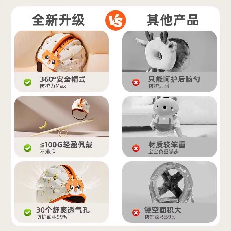 婴儿护头防摔帽神器儿童学走路学爬安全帽学步防撞帽宝宝防摔头盔