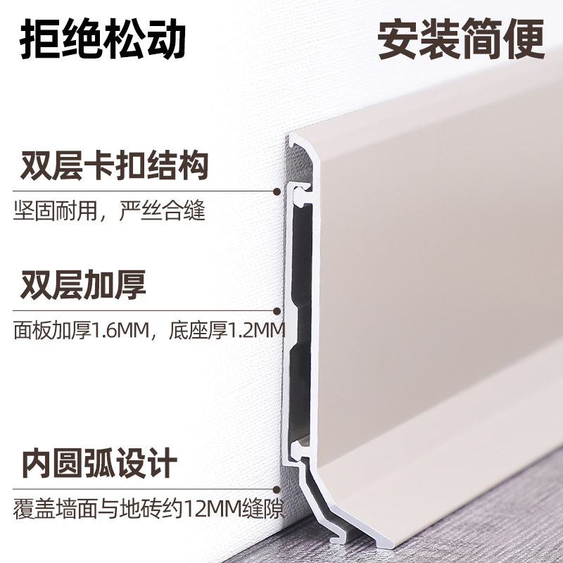铝合金踢脚线卡扣式地角贴脚线条6cm8cm不锈钢超薄金属地脚线安装