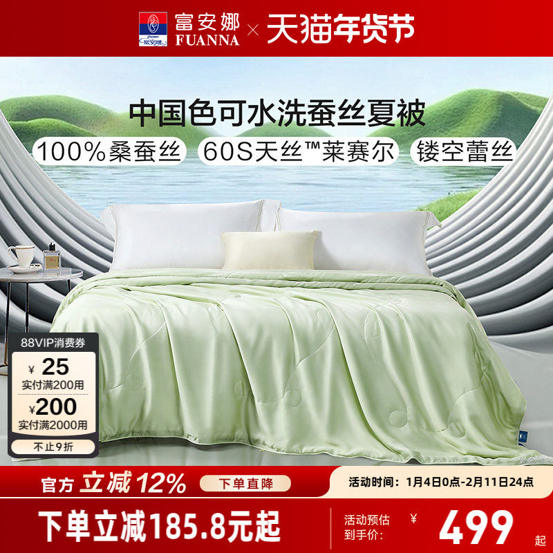 富安娜被子可水洗桑蚕丝被芯夏凉被60S天丝莱赛尔夏季薄款空调被
