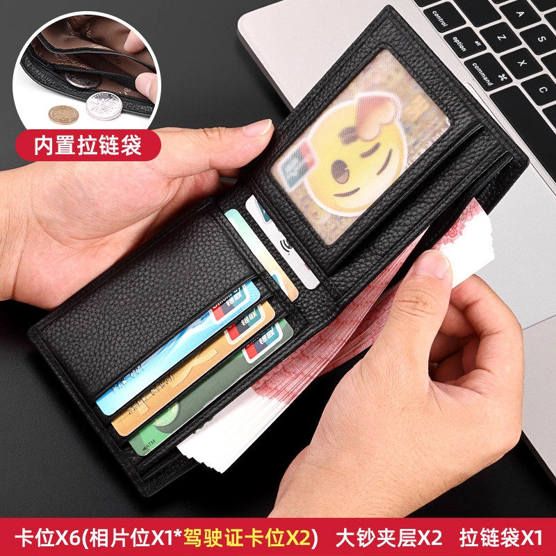 钱包男士2026新款钱包真皮质感男款短款卡包钱包一体款皮夹子拉链