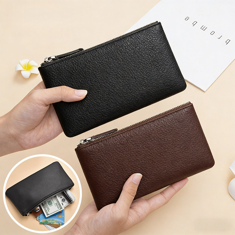 大容量带拉链钱包收纳包女复古简约真皮质感超软手拿包女零钱钥匙