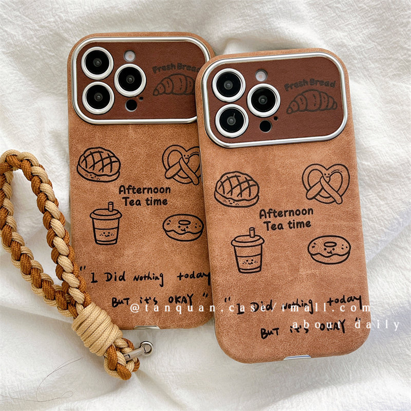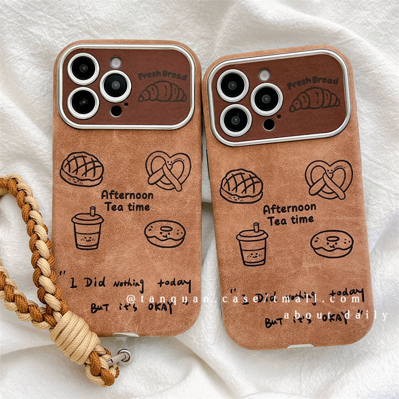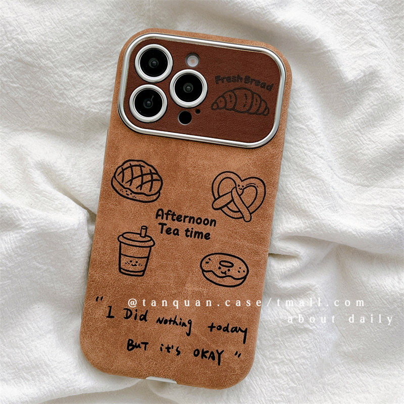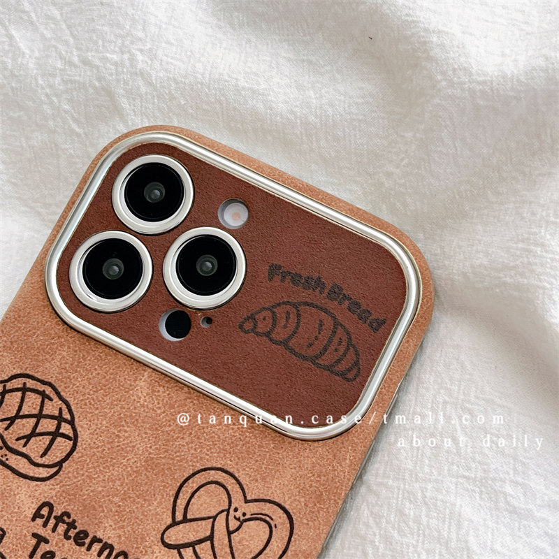 ins秋冬麂皮棕色面包适用iphone16苹果15pro手机壳14promax新款13女款13pro大视窗14日韩15防摔12pro全包软壳