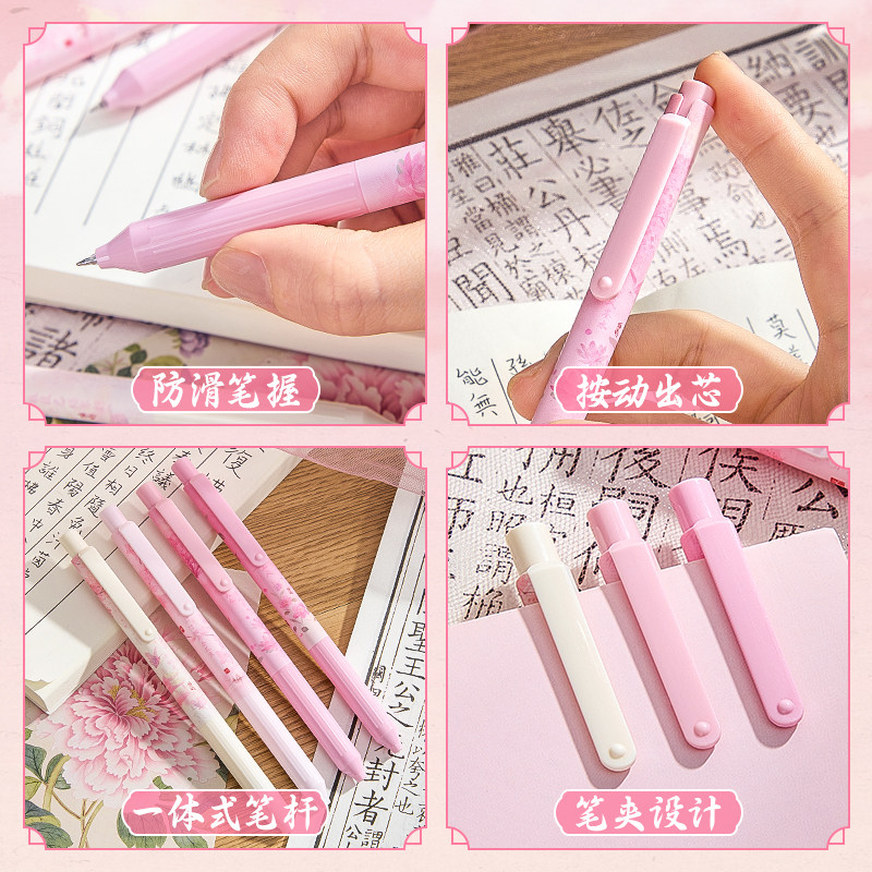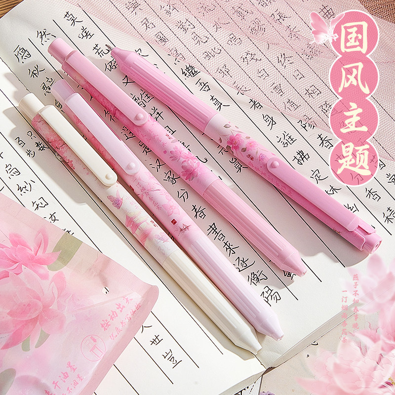 晴耕雨读刷题笔专用高颜值速干按动中性笔ins黑笔圆珠笔ST笔学生用考试笔顺滑0.5笔芯黑色水性签字笔水笔碳素