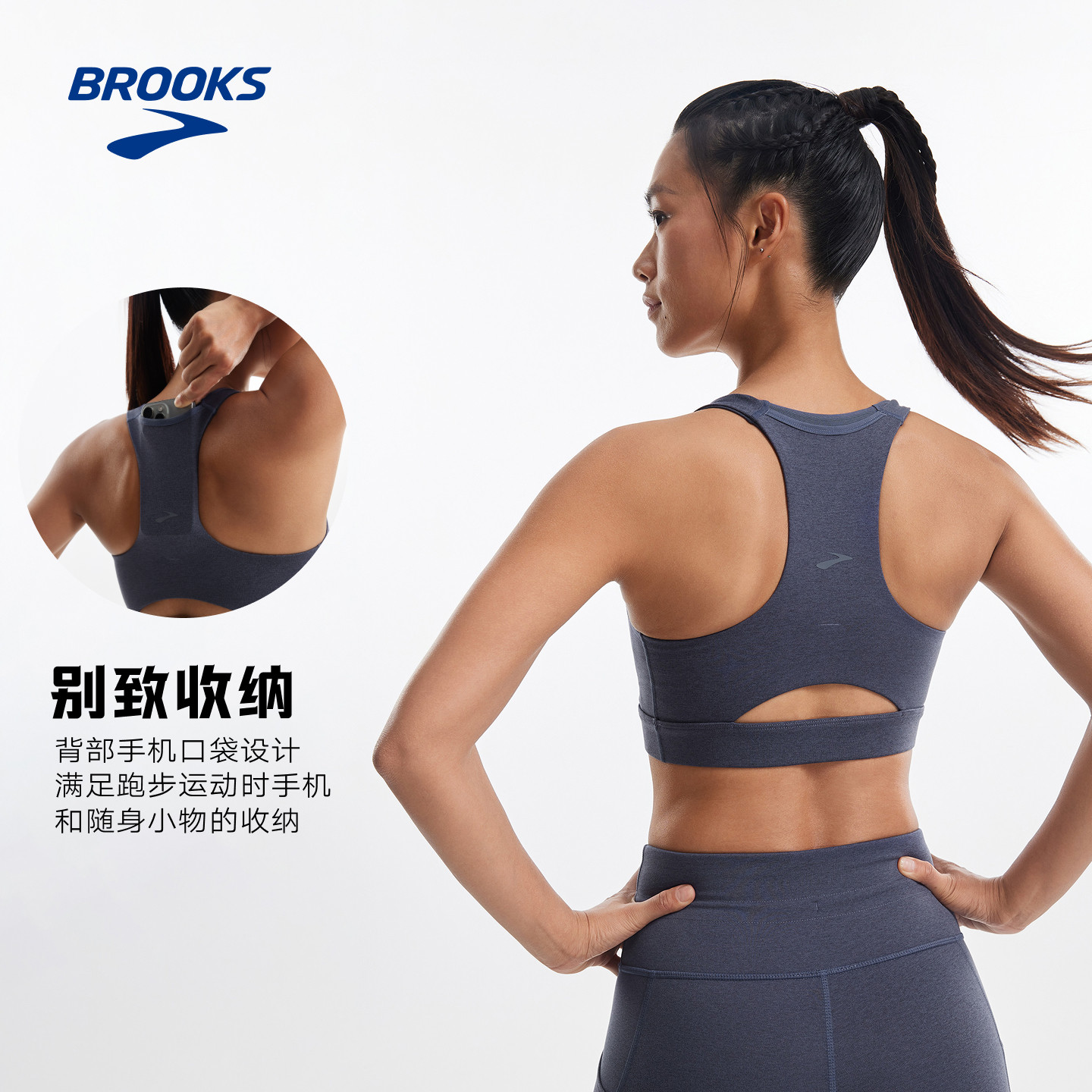 BROOKS布鲁克斯运动防震女文胸大码跑步内衣支撑中强度收纳可拆卸