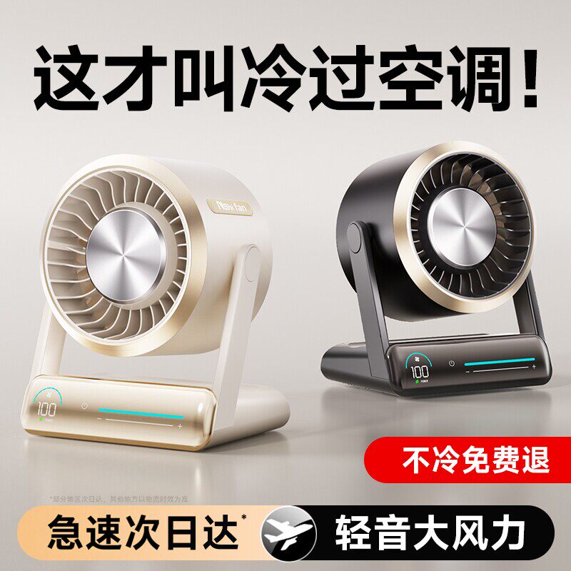 桌面小风扇超静音2025新款办公室桌上学生宿舍电风扇小型USB充电款迷你便携手持强力无声台式台扇长续航工位