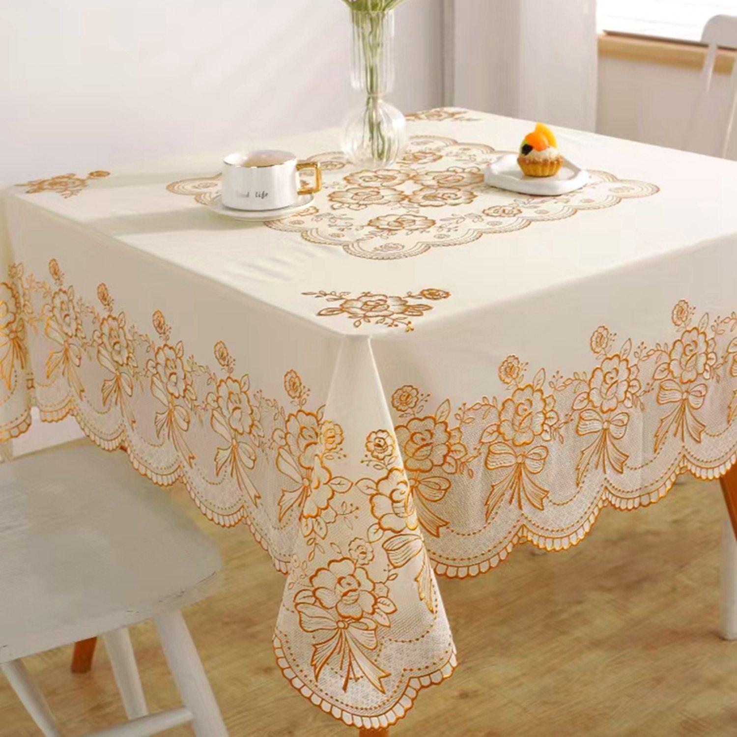 桌布防水防油免洗防烫长方形餐桌布茶几垫塑料台布套客厅烫金桌布