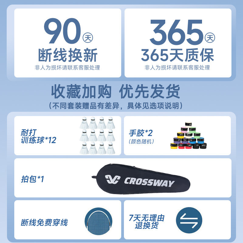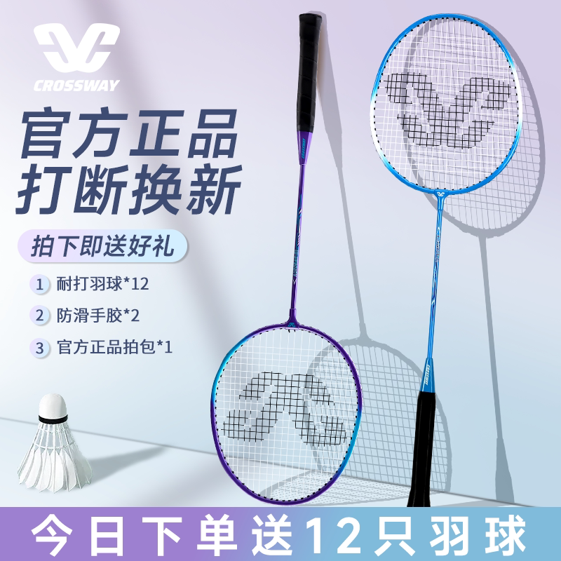 克洛斯威官方正品旗舰店羽毛球拍全碳素纤维超轻儿童耐打双拍套装