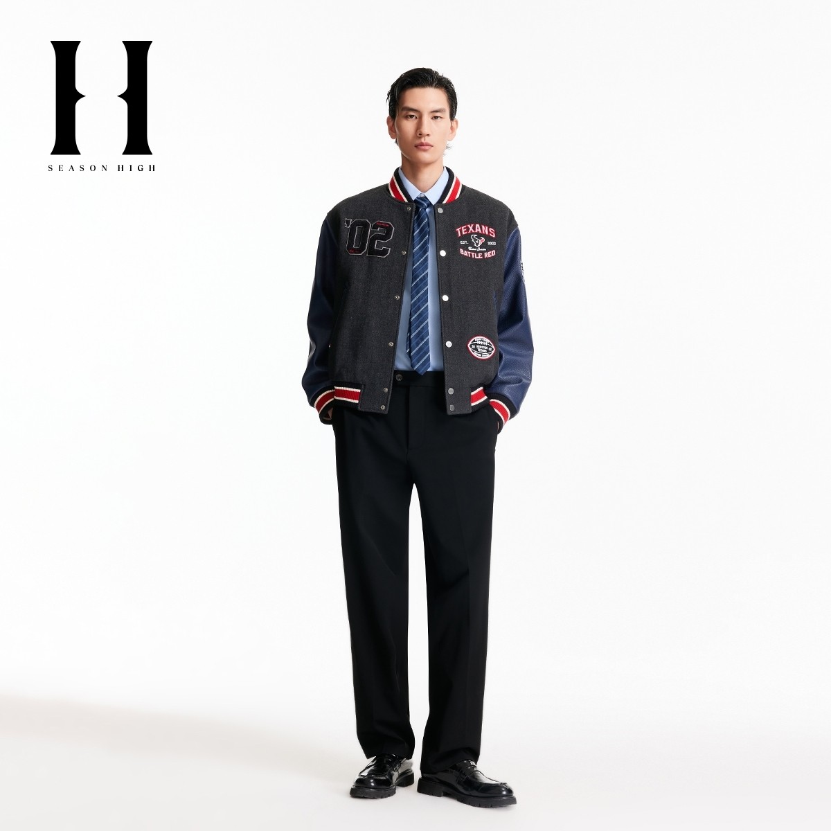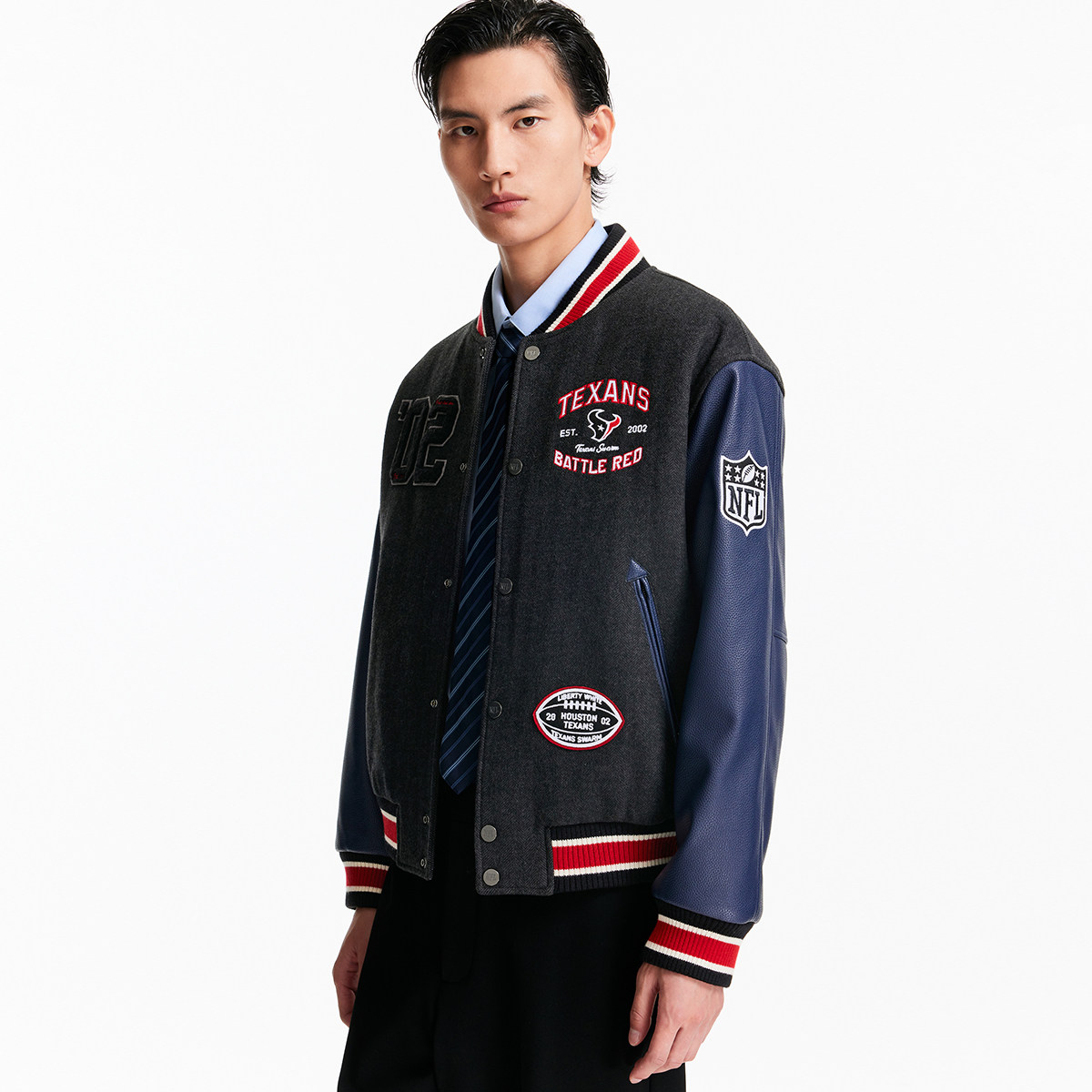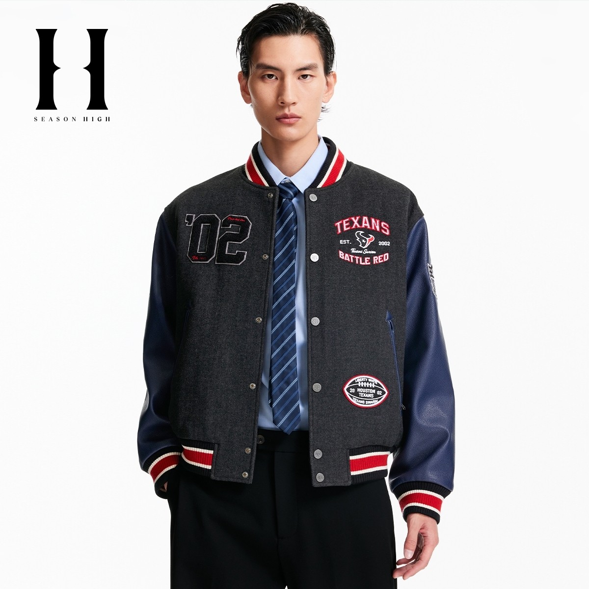 SEASON HIGH男装NFL联名秋冬毛呢大衣2025年新款德州人队棒球外套