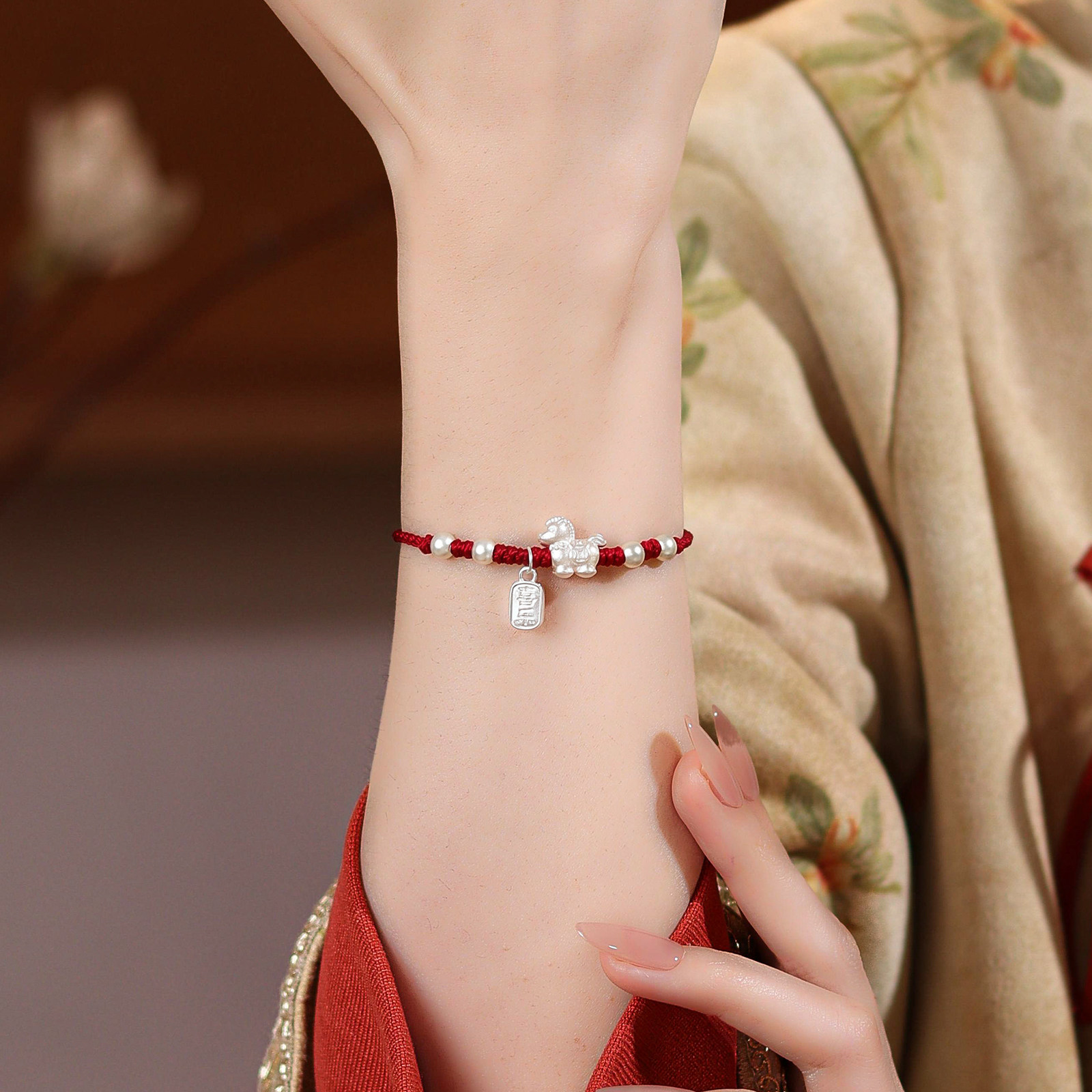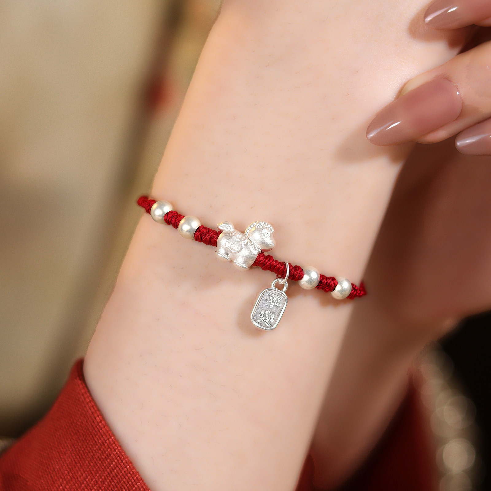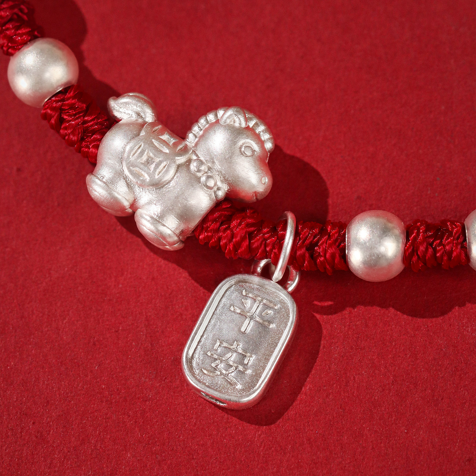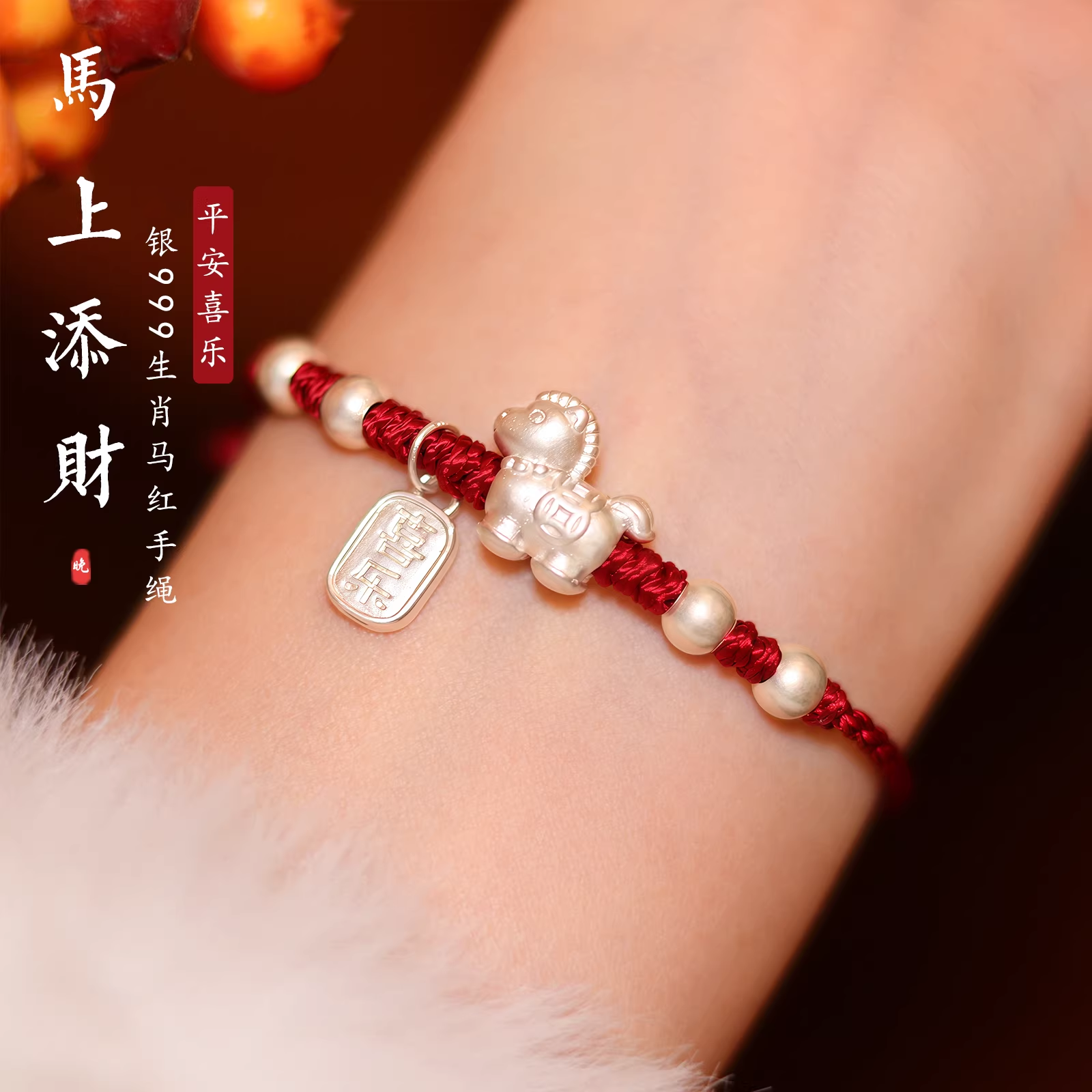 马上添财招财足银999生肖马年本命年红手绳转运绝美手链编织绳