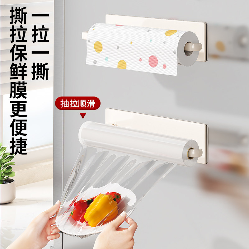 厨房纸巾架橱柜挂架子保鲜膜收纳家用卷纸免打孔抹布挂杆磁吸冰箱
