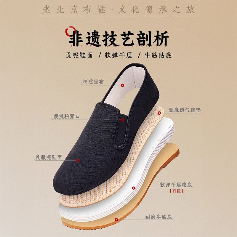 老北京布鞋男士春季新品千层底帆布防滑单鞋中老年爸爸布鞋回购