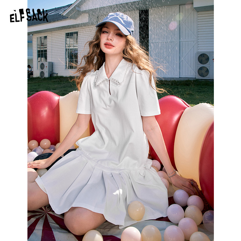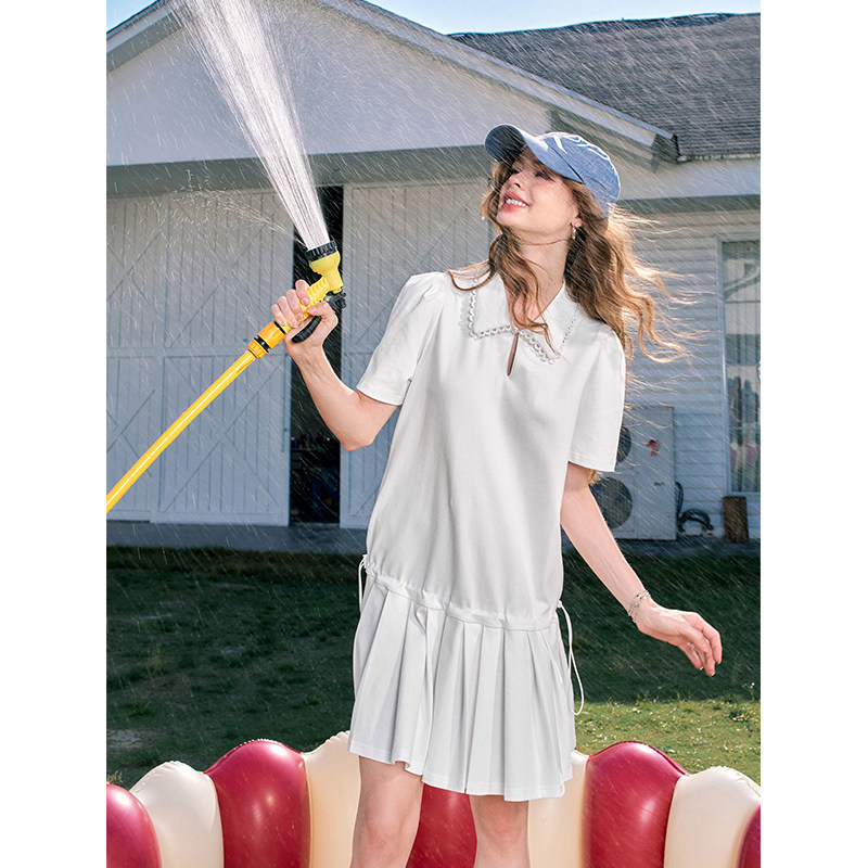 【冰爽棉】妖精的口袋白色百褶衬衫连衣裙女2025夏新款学院风减龄