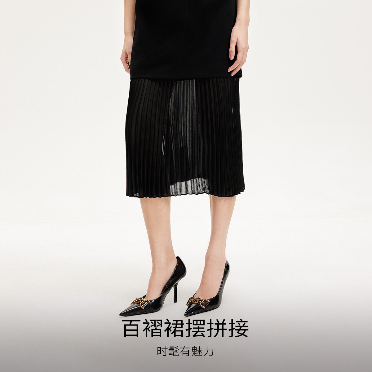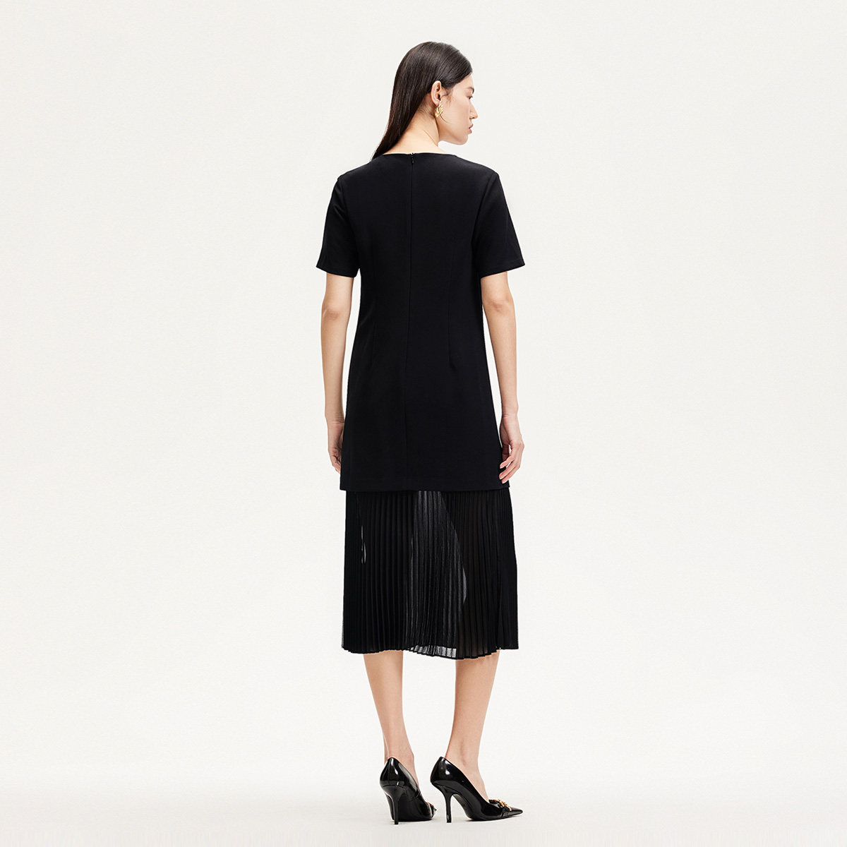 Vero Moda奥莱连衣裙2025秋季新款百褶拼接赫本风T恤裙优雅休闲