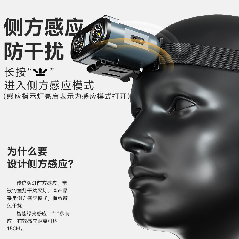 头灯强光充电超亮头戴式照明感应超长续航户外夜钓鱼专用led新款