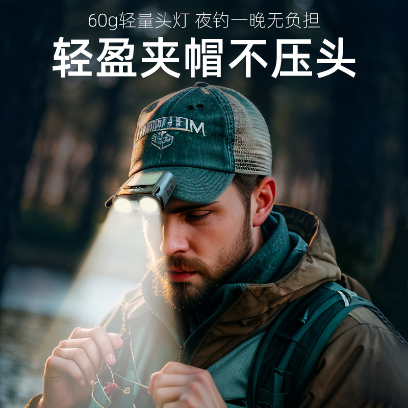 沃尔森夜钓头灯超长续航钓鱼专用感应帽夹灯强光超亮充电头戴夹帽