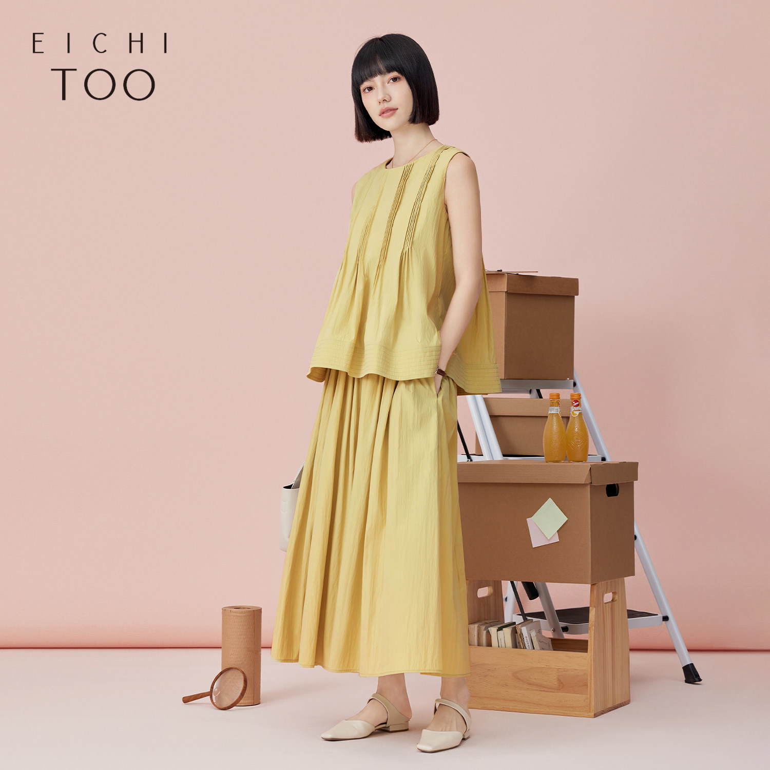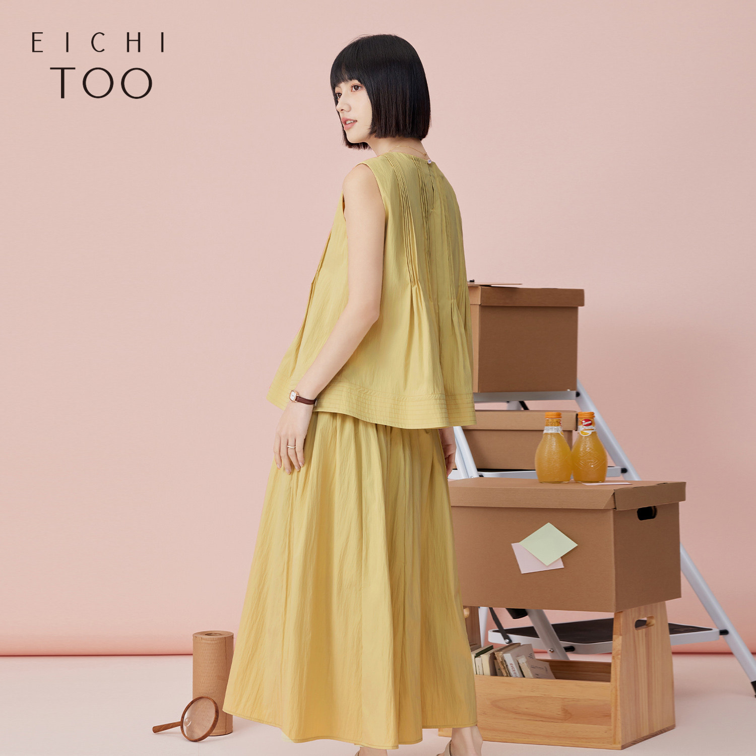 爱居兔夏季新款高级时尚通勤风背心半裙套装