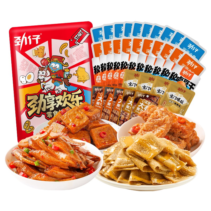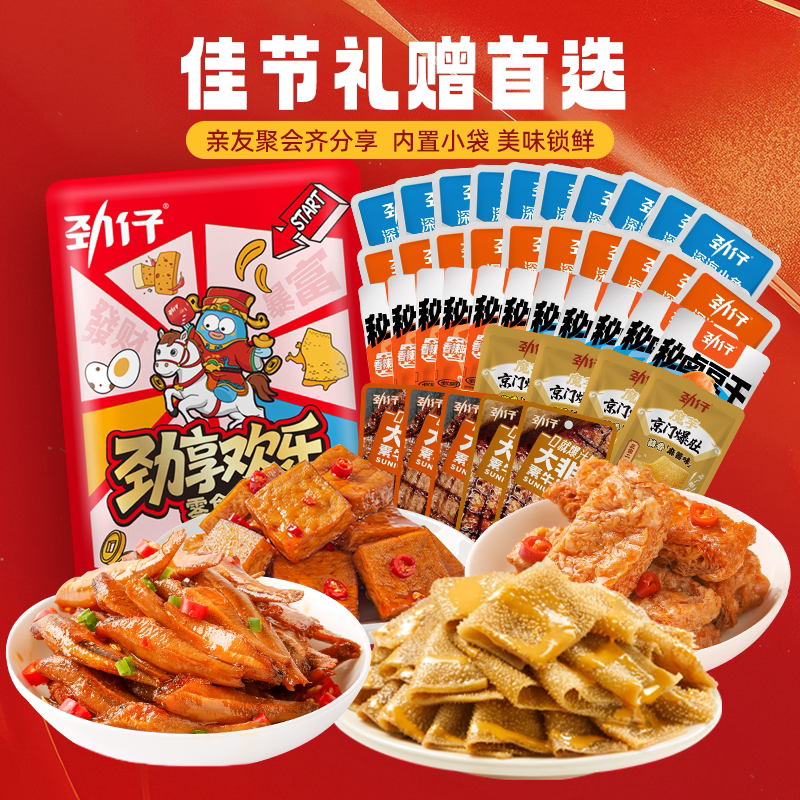 劲仔年货零食大礼包408g小鱼仔干即食鱼毛肚休闲食品小吃年货零食