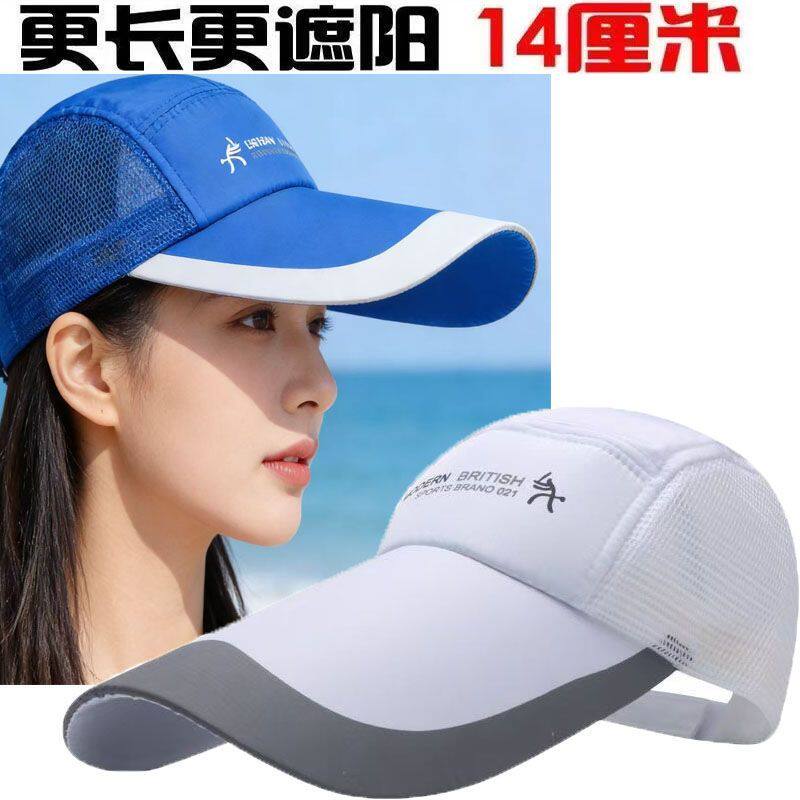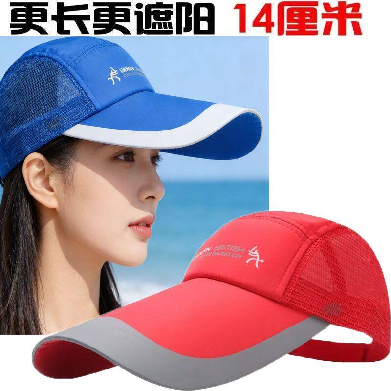 夏季新款网眼防晒户外遮阳鸭舌帽帽子女士棒球帽加长帽檐蓝色粉色
