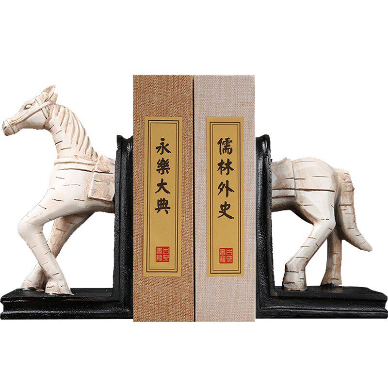 马到成功书立摆件复古做旧书档套装办公室书柜书房装饰品商务礼品