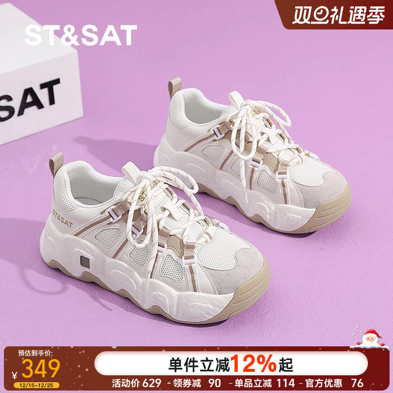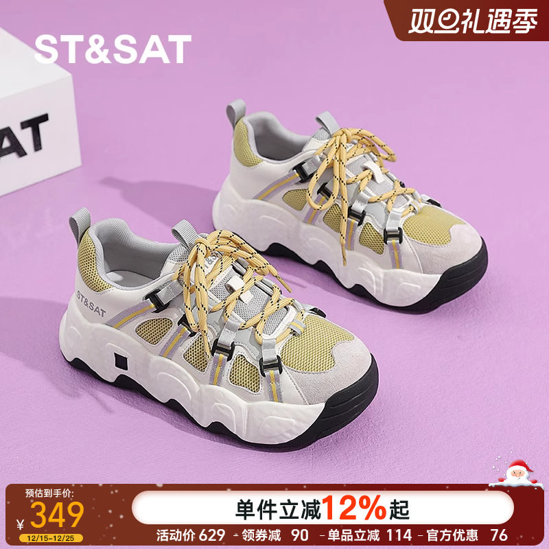 星期六老爹鞋女鞋春季新款透气爆款网面鞋女士5CM厚底增高运动鞋